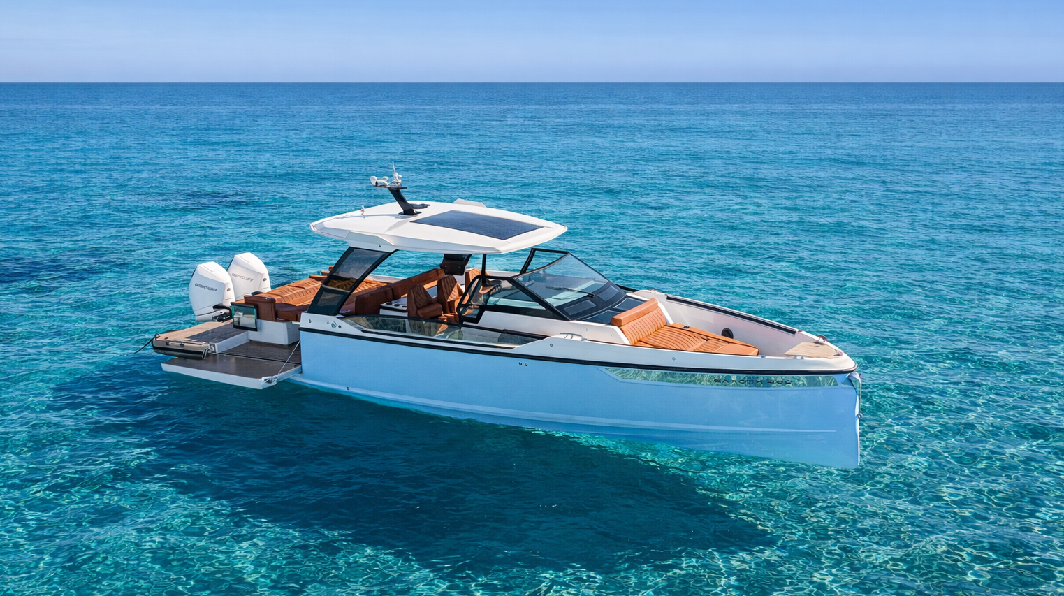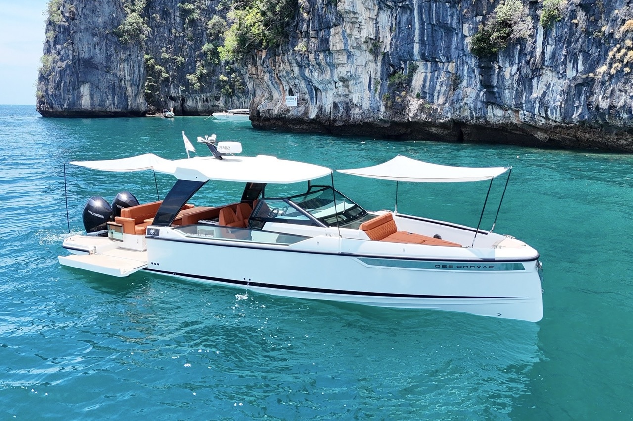 This Saxdor 320 is a versatile and stylish choice for charter in Mallorca, offering a blend of agility, comfort, and modern design. Its spacious deck layout provides generous seating, sunbathing areas, and easy access to the water, making it ideal for exploring the island’s coves.
