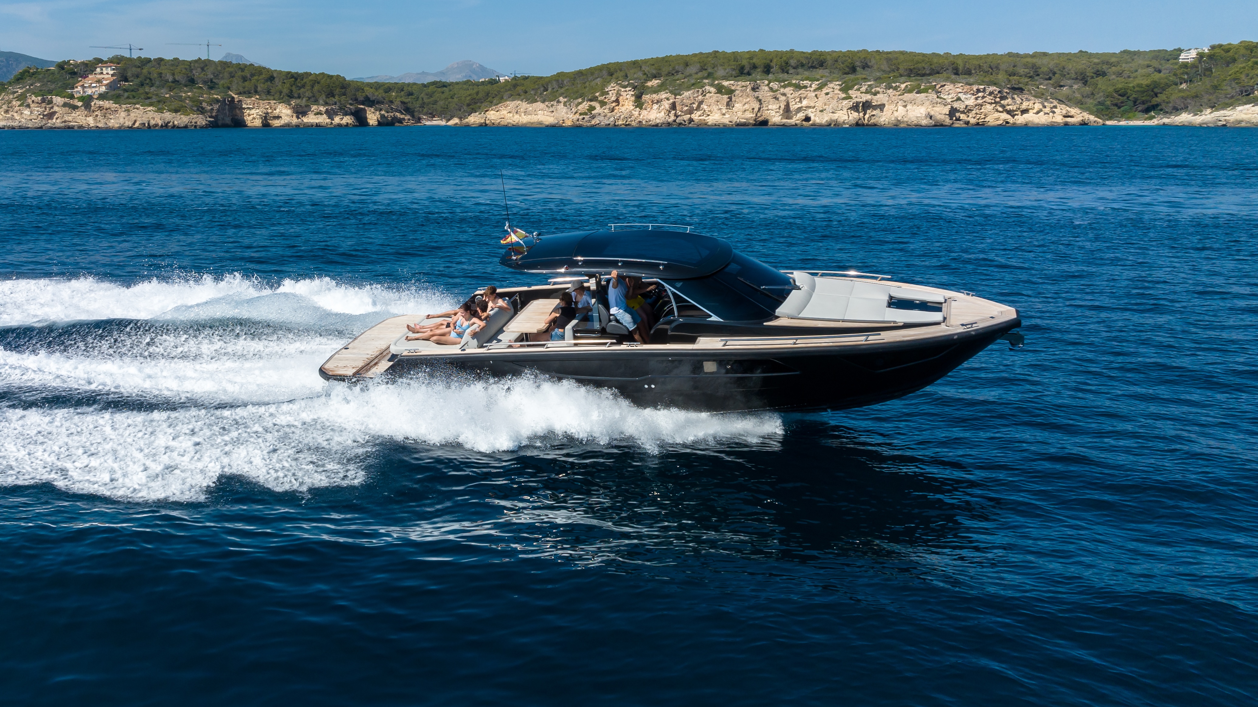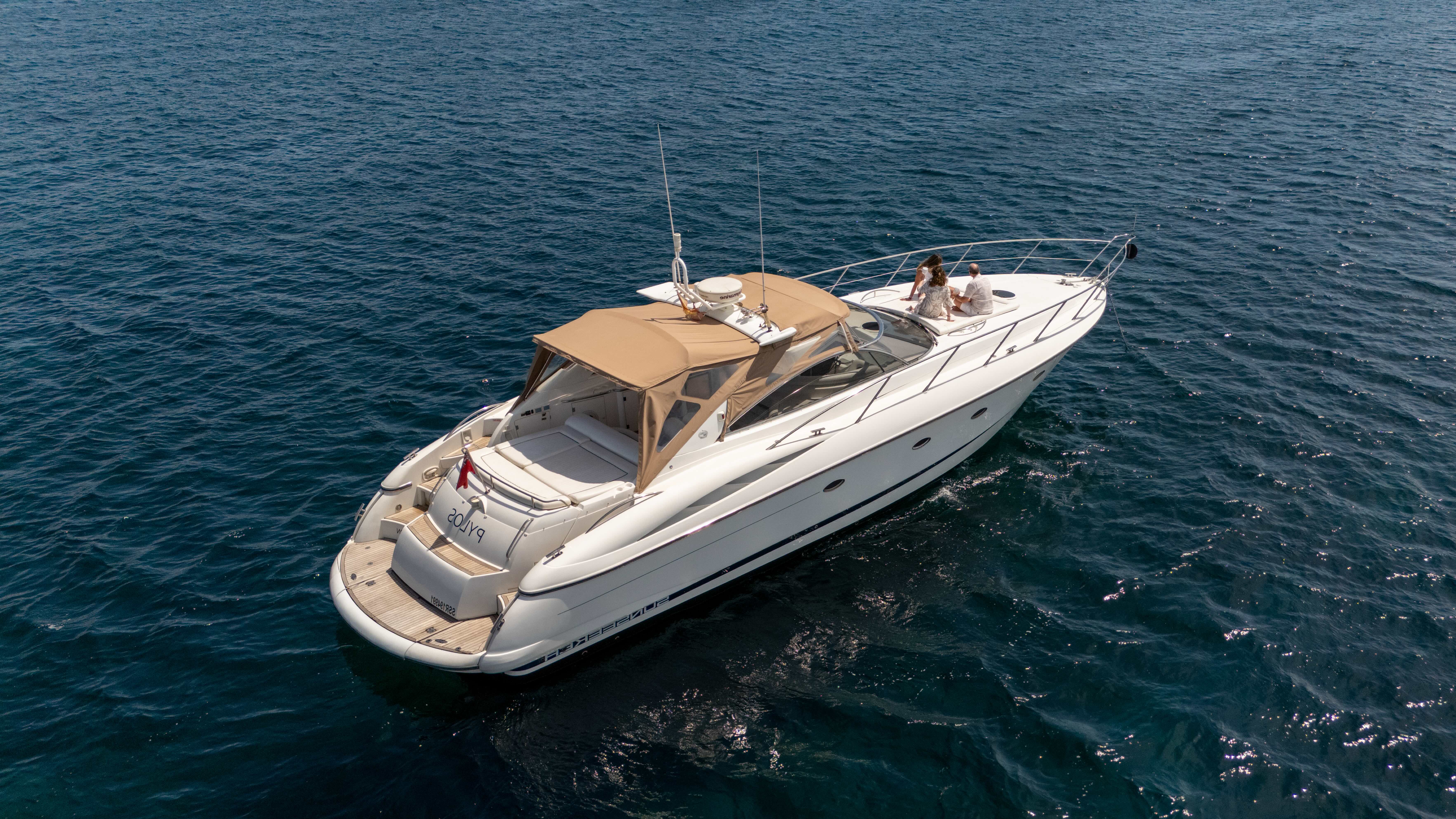 The Sunseeker 50 delivers a classic blend of sporty style and practical comfort — ideal for cliff-hopping along Mallorca’s coast or cruising the archipelago. Its compact but sleek profile makes for agile handling, while the well-designed deck and cockpit give space for lounging, sunbathing or socialising. Below deck you get a functional layout (salon, galley, cabins) that balances comfort and usability, making it suitable for weekend getaways or day trips.