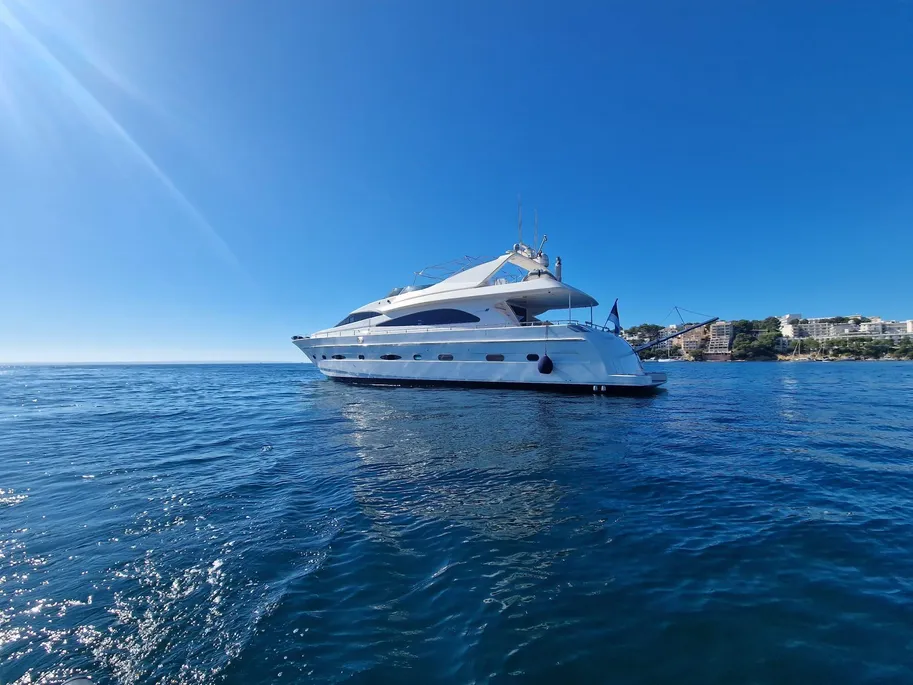 El Astondoa 82 GLX es un magnífico ejemplo de la mejor construcción europea de yates. Combina un diseño elegante con un rendimiento potente y un confort lujoso. Este yate de motor con flybridge de 82 pies está diseñado para cruceros de larga distancia, entretenimiento con estilo y para que cada travesía sea un verdadero placer.