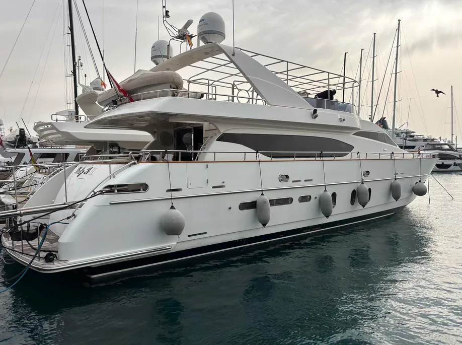 Este exclusivo Mone Fino 82 de 2005, diseñado a medida y ubicado en Palma de Mallorca, es una embarcación única en su clase, concebida para ofrecer tanto lujo como rendimiento.