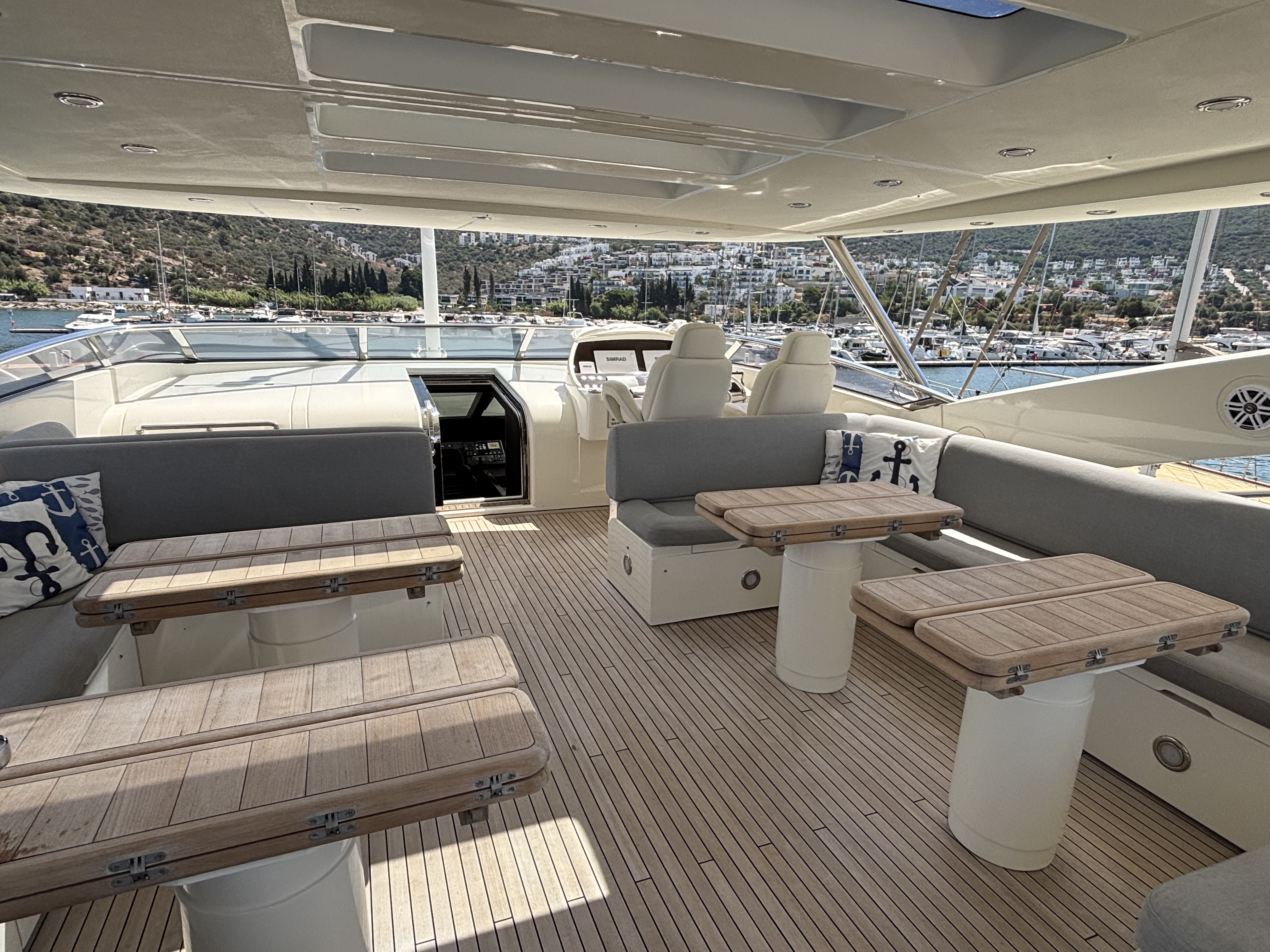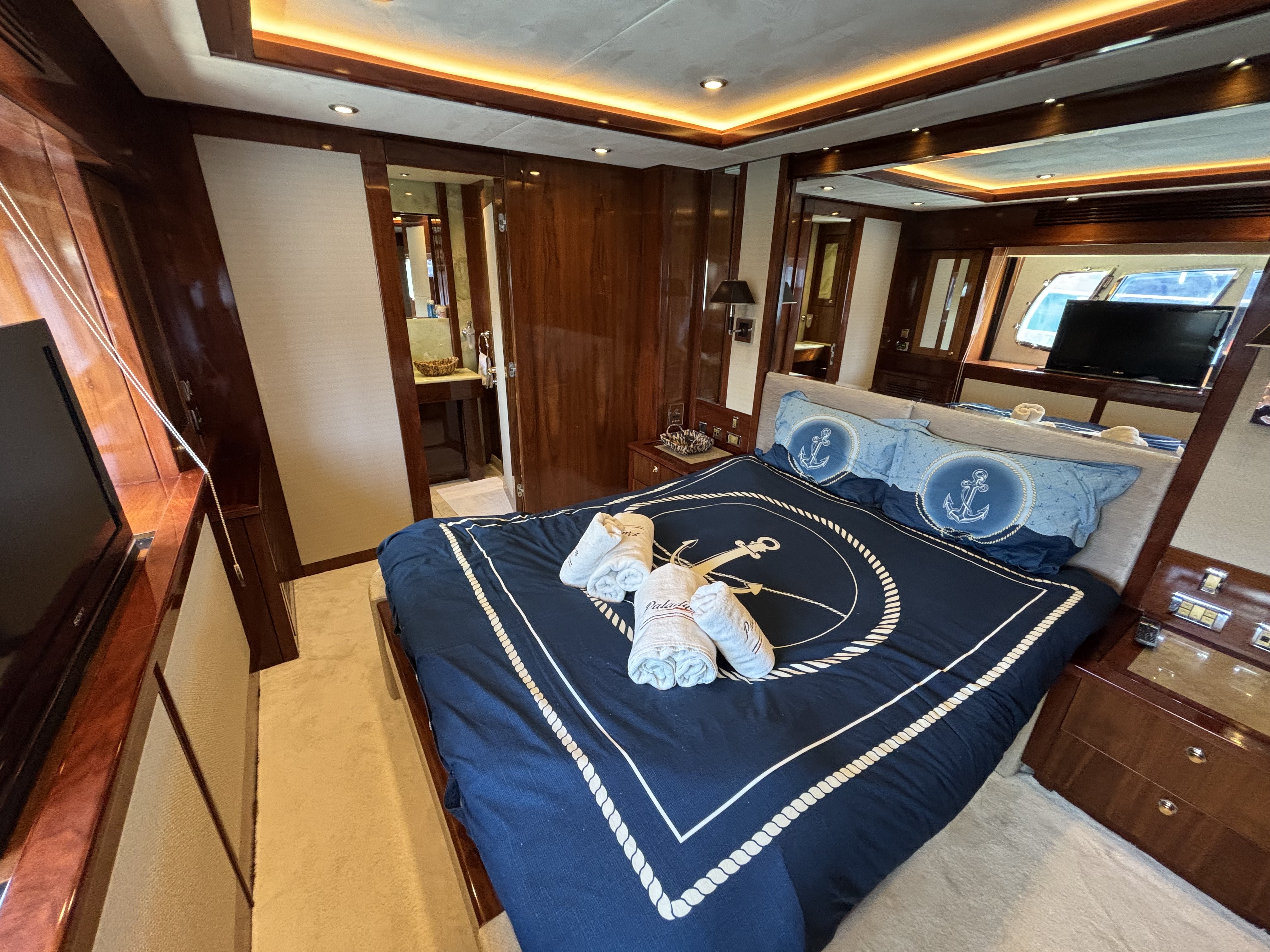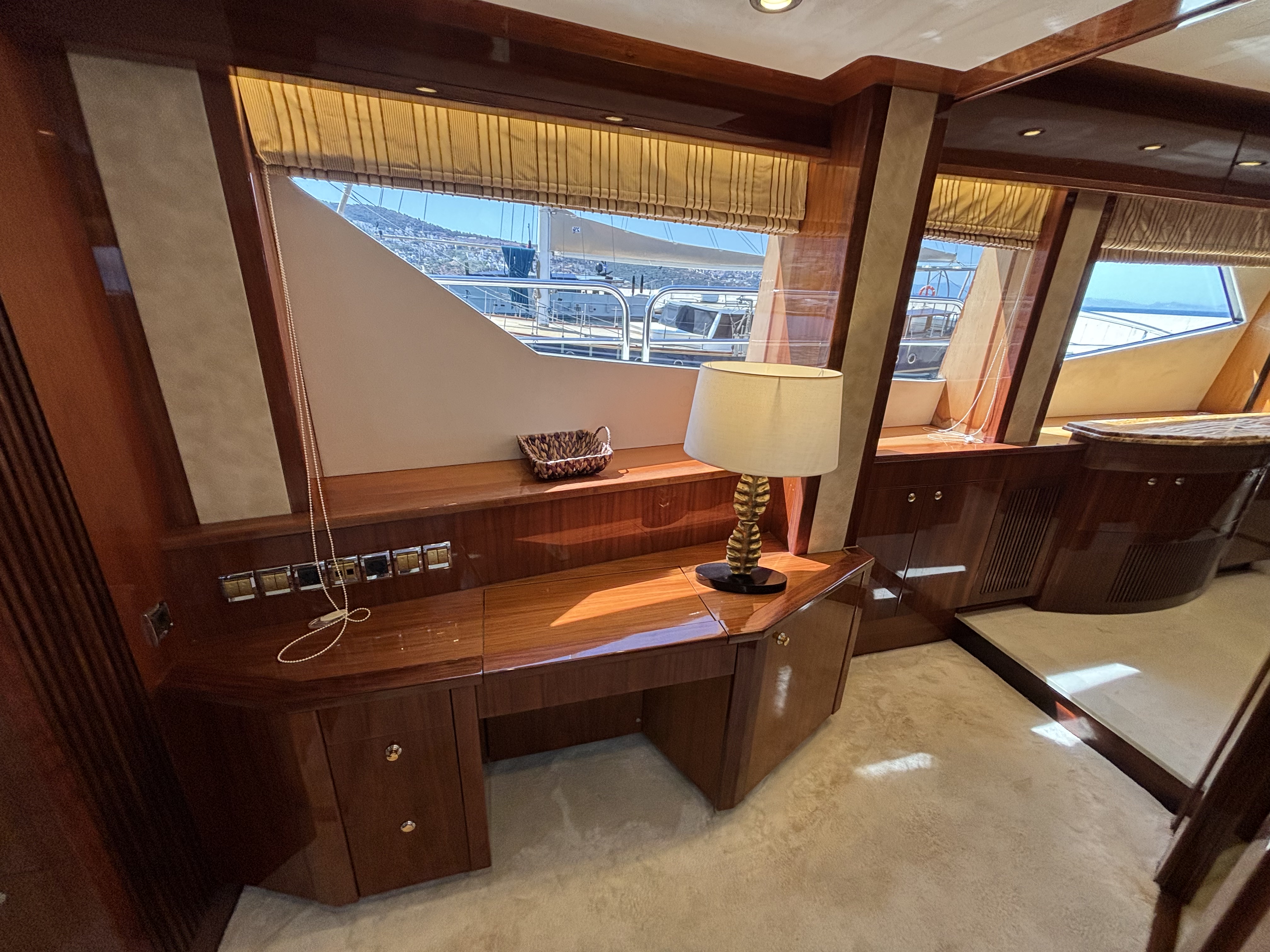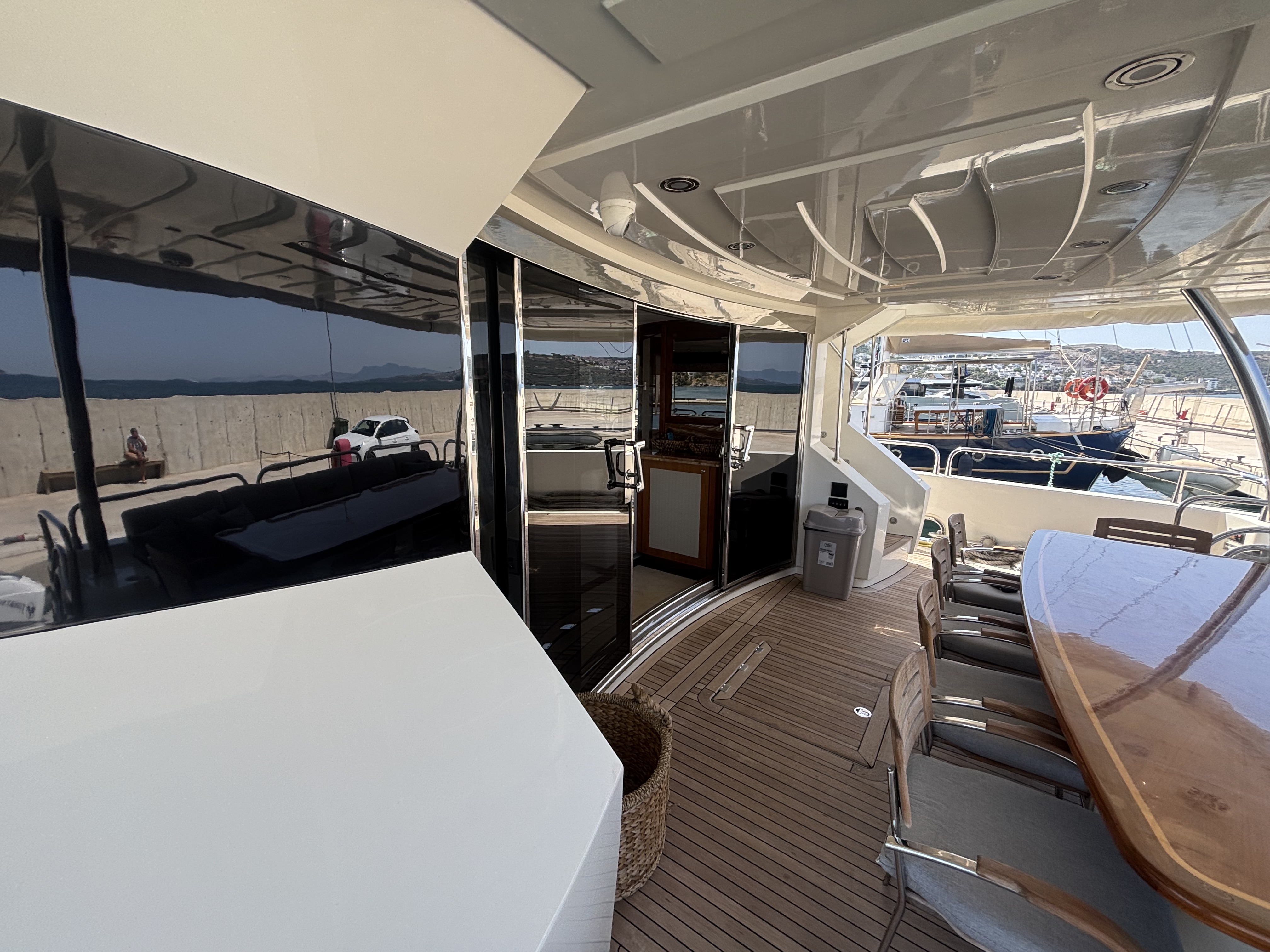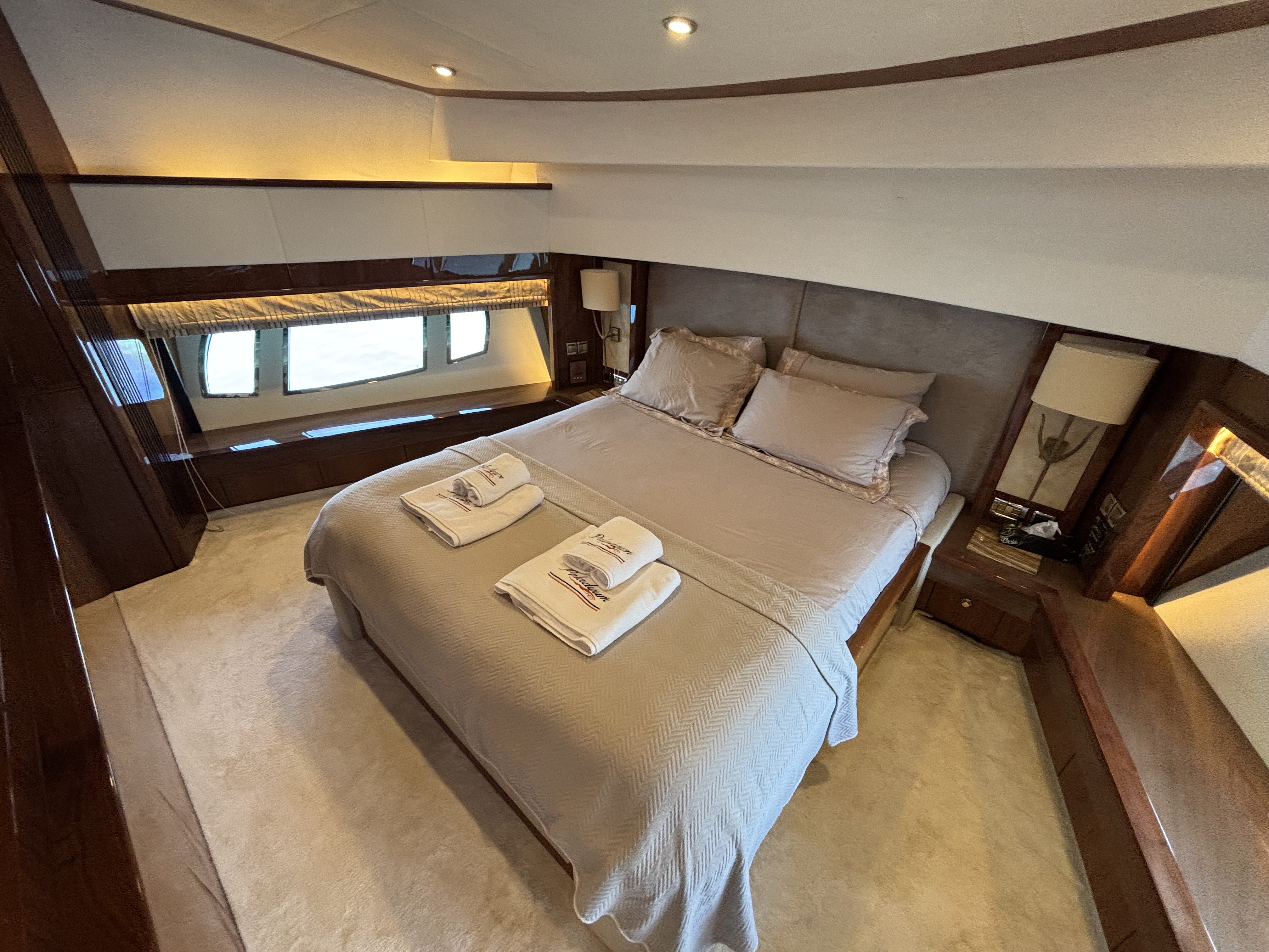 Desde el primer paso a bordo, te recibe un ambiente de lujo refinado. El salón principal desprende una sofisticación atemporal, con un espacio amplio ideal tanto para recibir invitados como para relajarse con total comodidad. Acabados en madera noble, mobiliario a medida y una atención al detalle impecable crean una atmósfera acogedora e impactante a la vez.