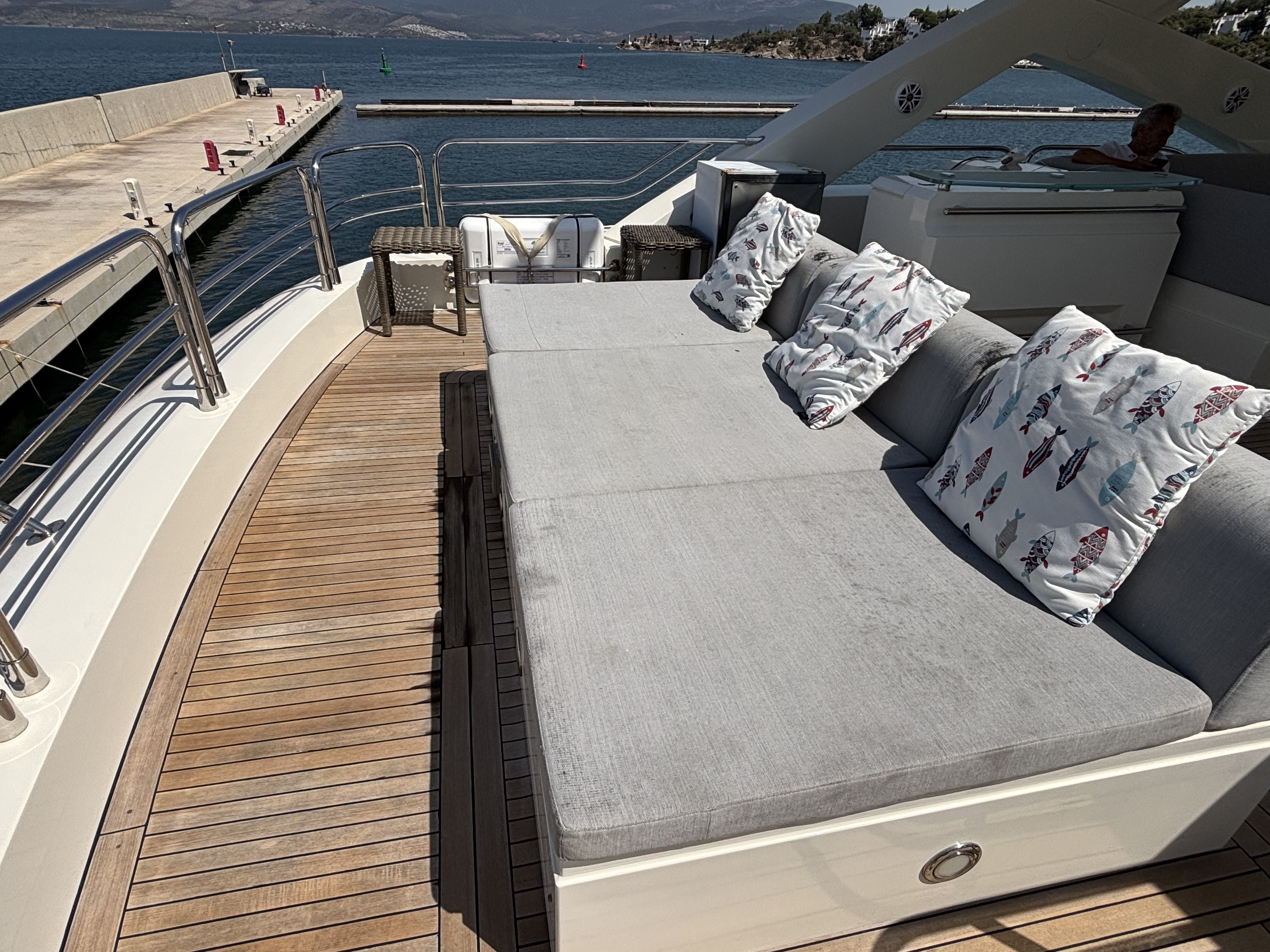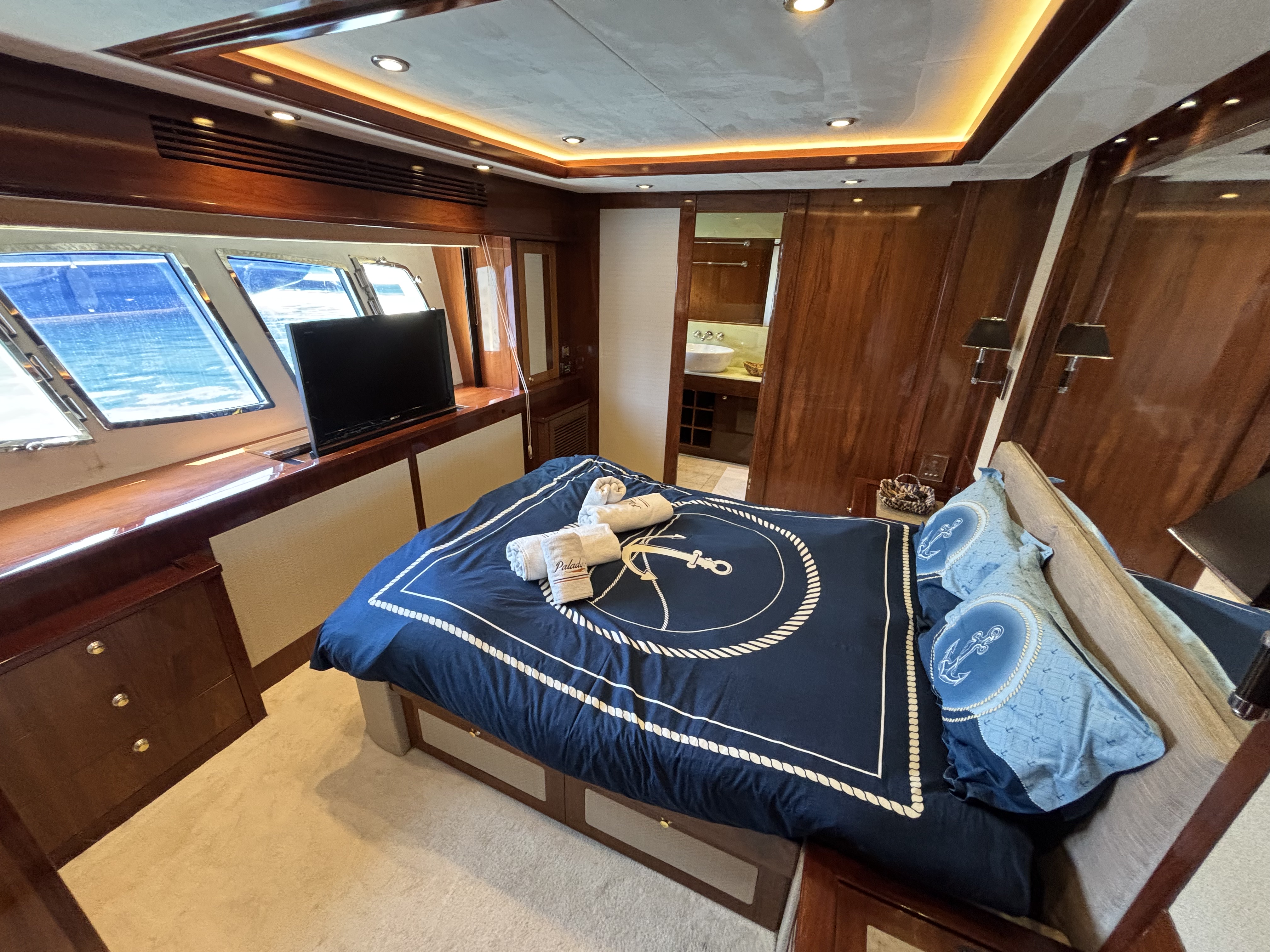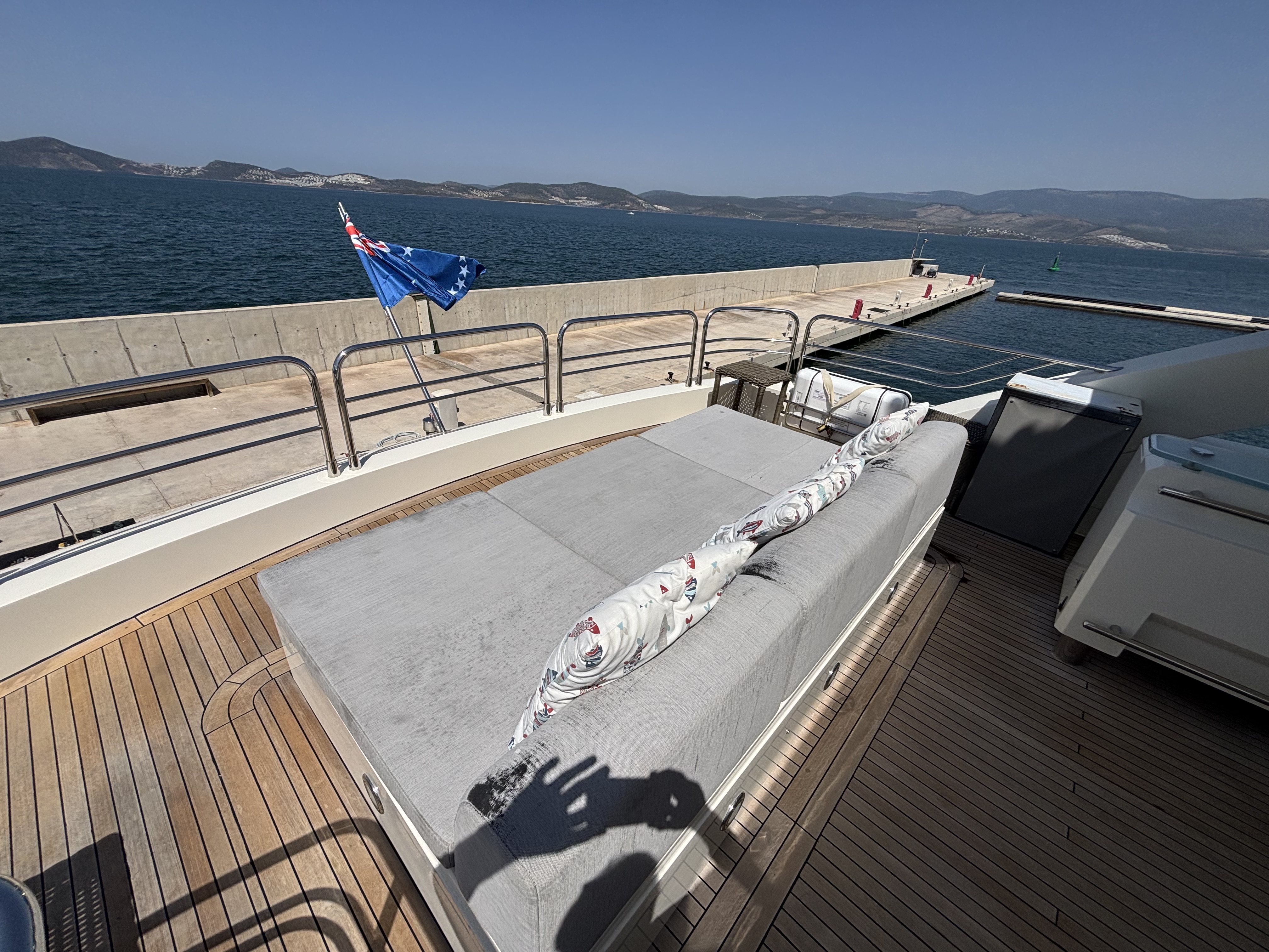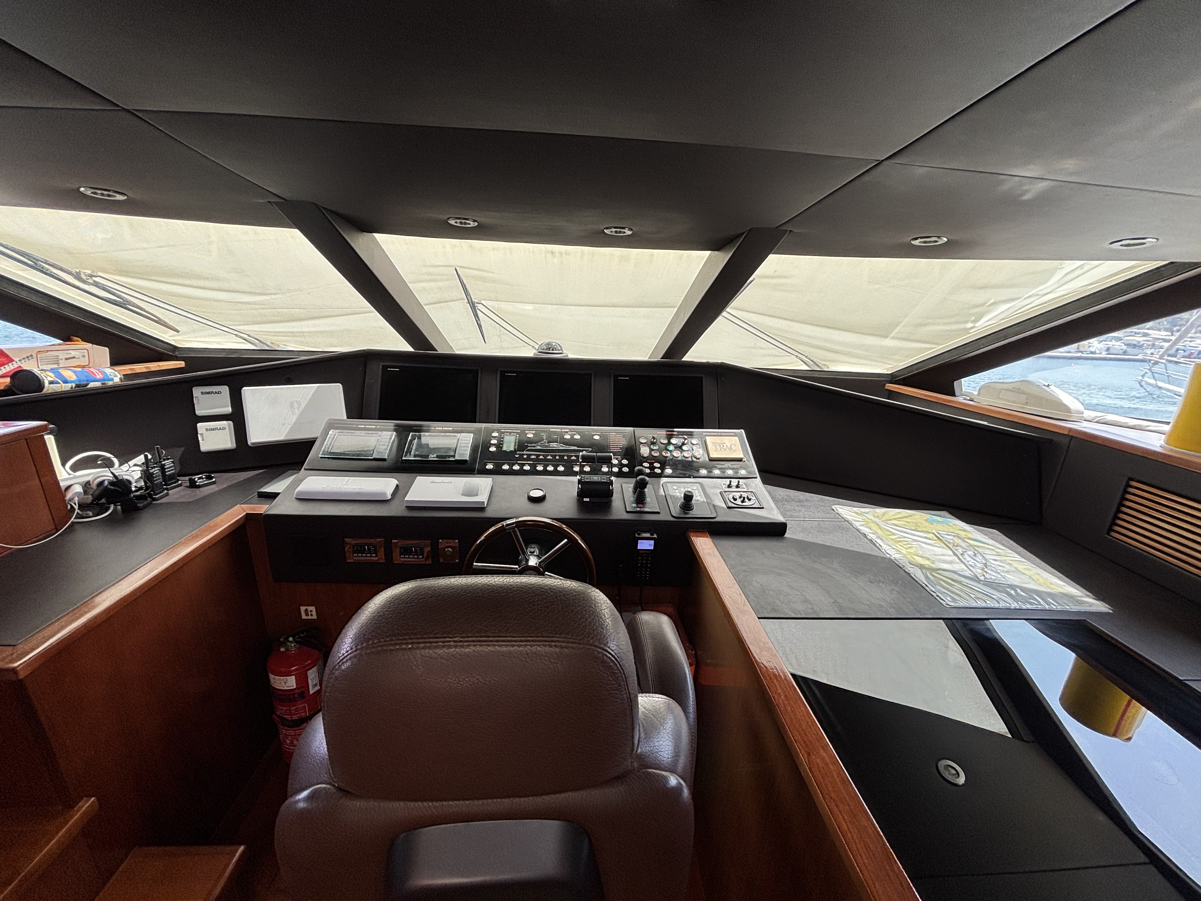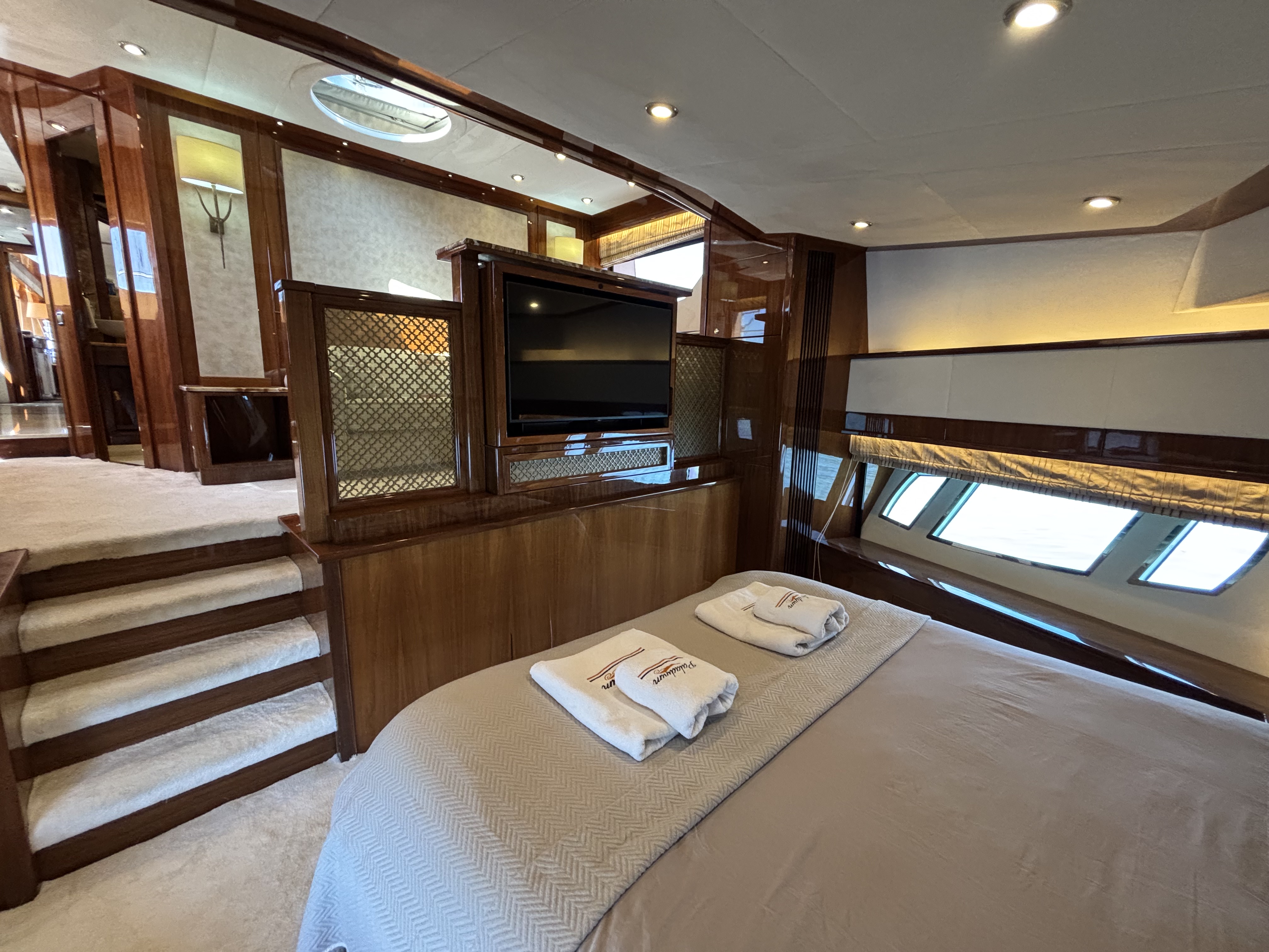 Desde el primer paso a bordo, te recibe un ambiente de lujo refinado. El salón principal desprende una sofisticación atemporal, con un espacio amplio ideal tanto para recibir invitados como para relajarse con total comodidad. Acabados en madera noble, mobiliario a medida y una atención al detalle impecable crean una atmósfera acogedora e impactante a la vez.