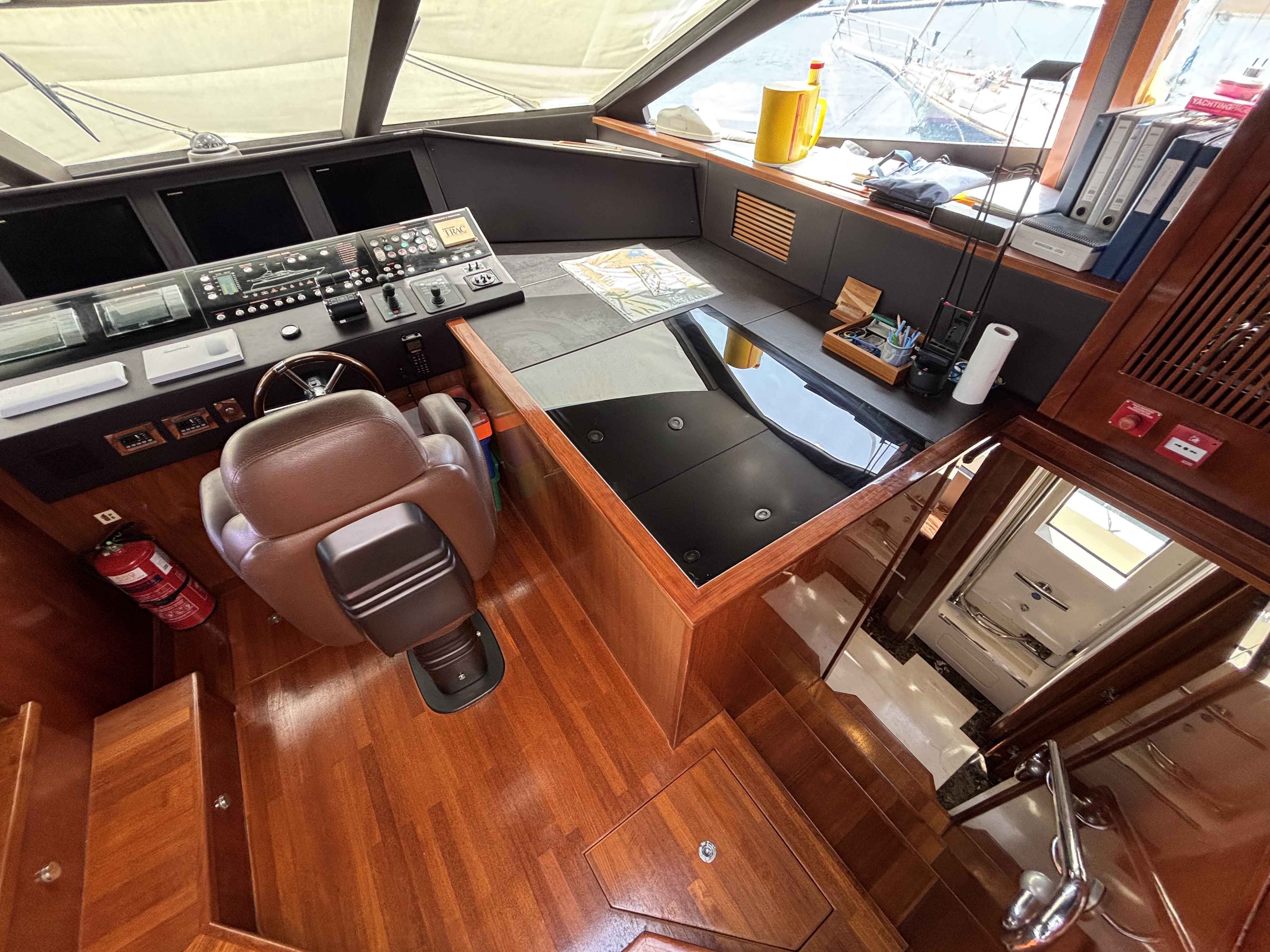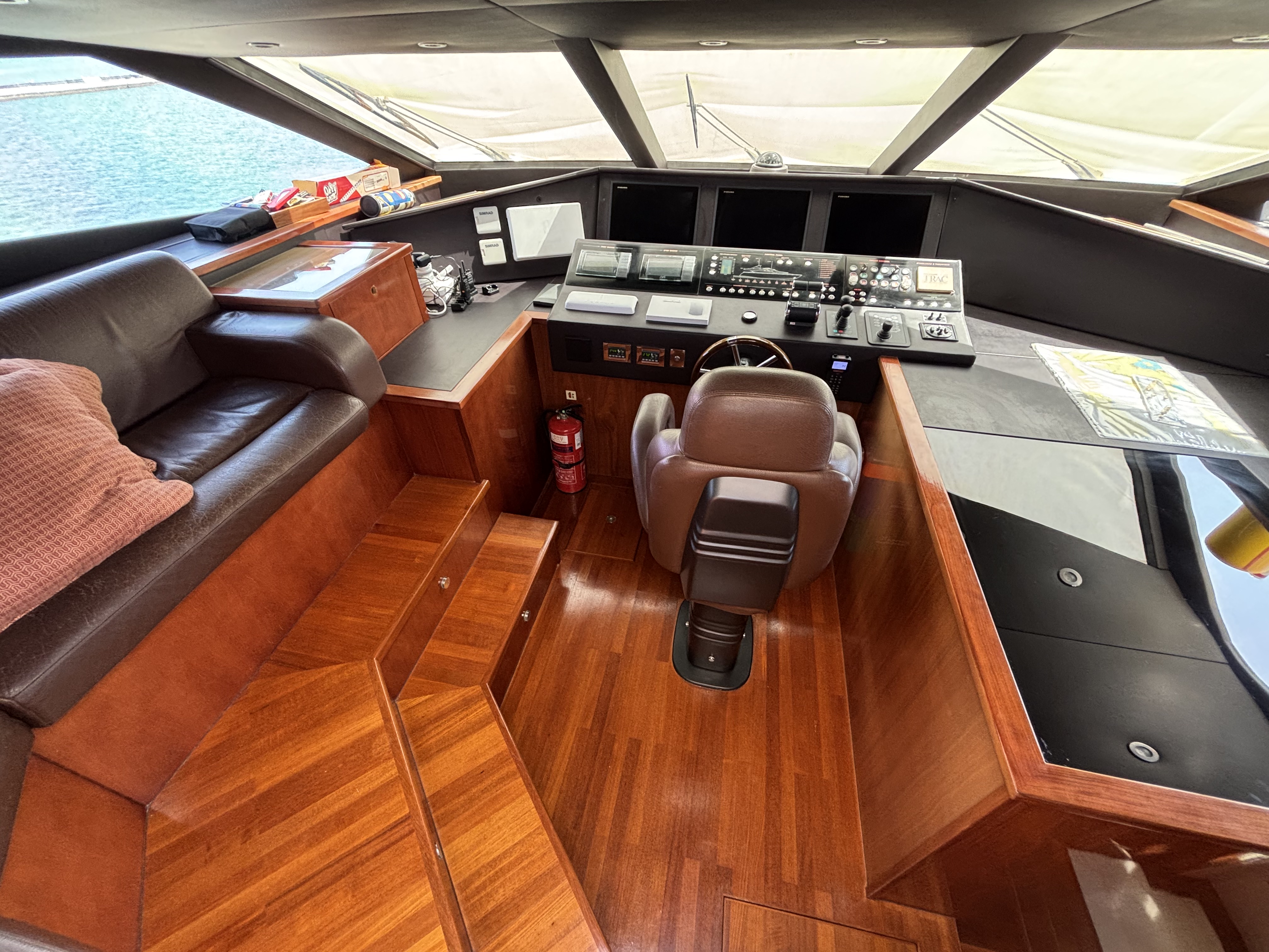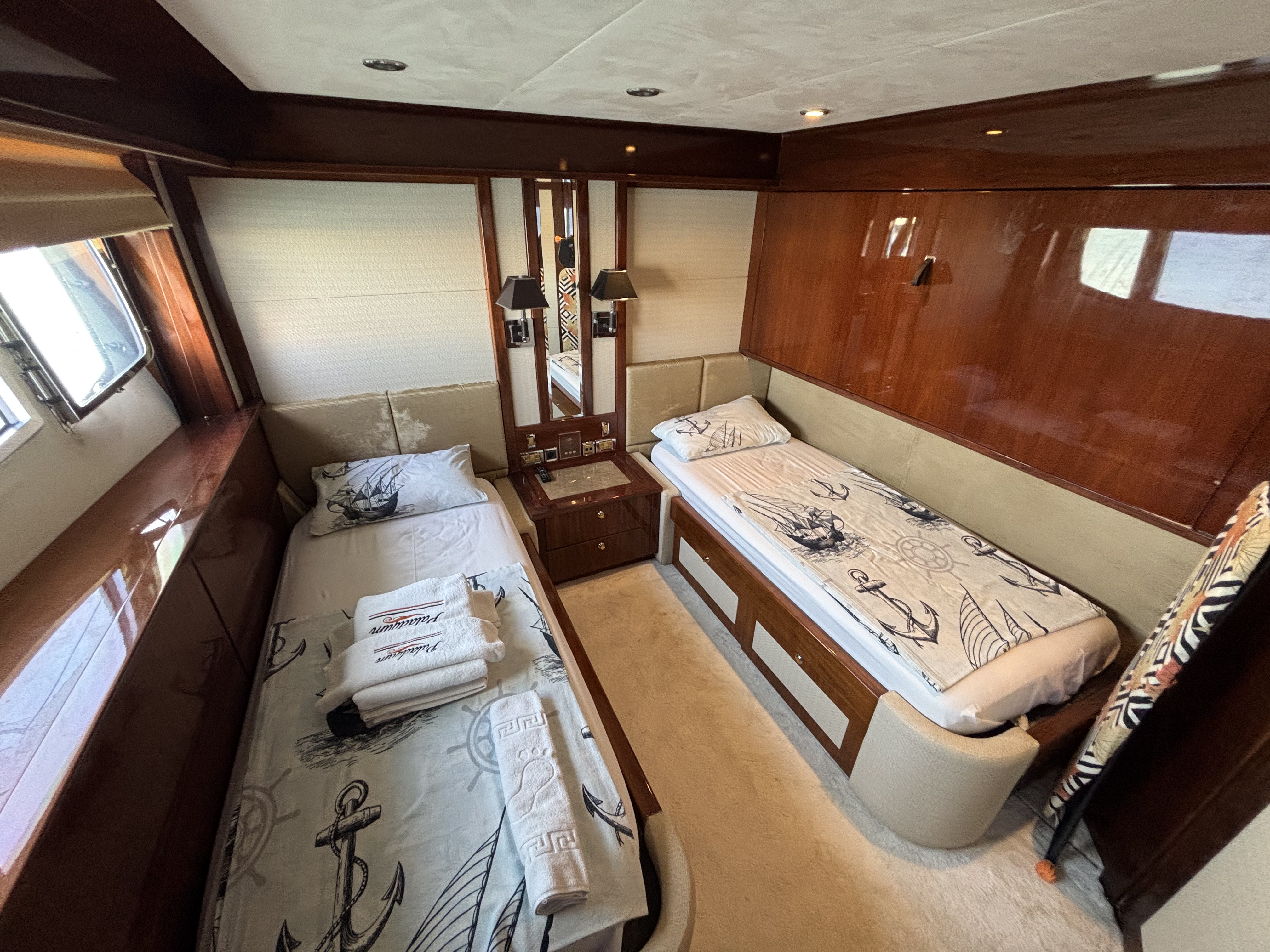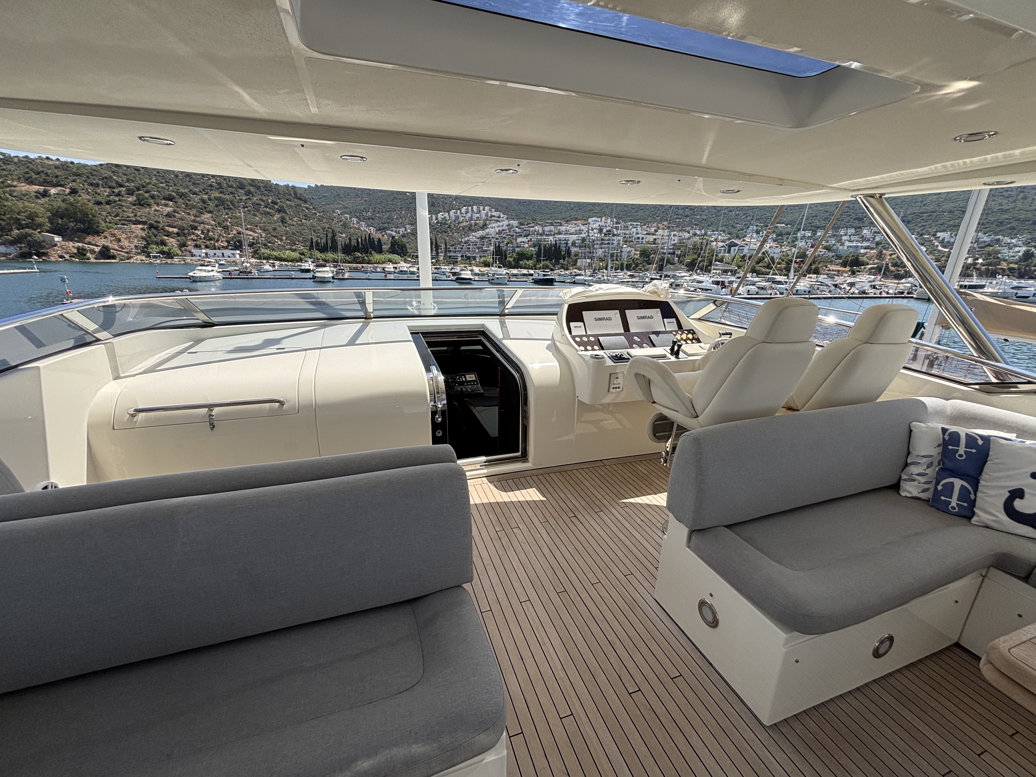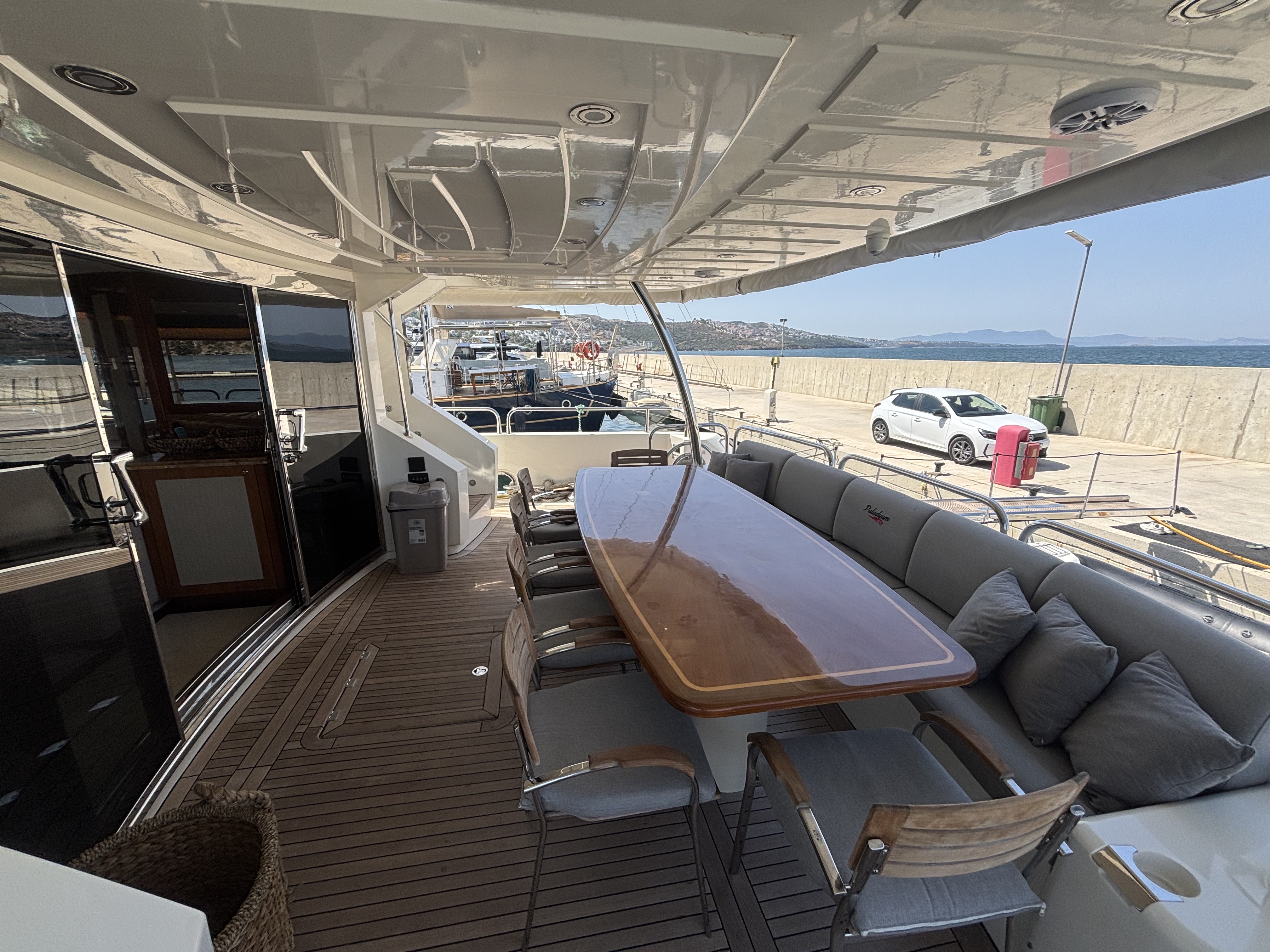 Desde el primer paso a bordo, te recibe un ambiente de lujo refinado. El salón principal desprende una sofisticación atemporal, con un espacio amplio ideal tanto para recibir invitados como para relajarse con total comodidad. Acabados en madera noble, mobiliario a medida y una atención al detalle impecable crean una atmósfera acogedora e impactante a la vez.