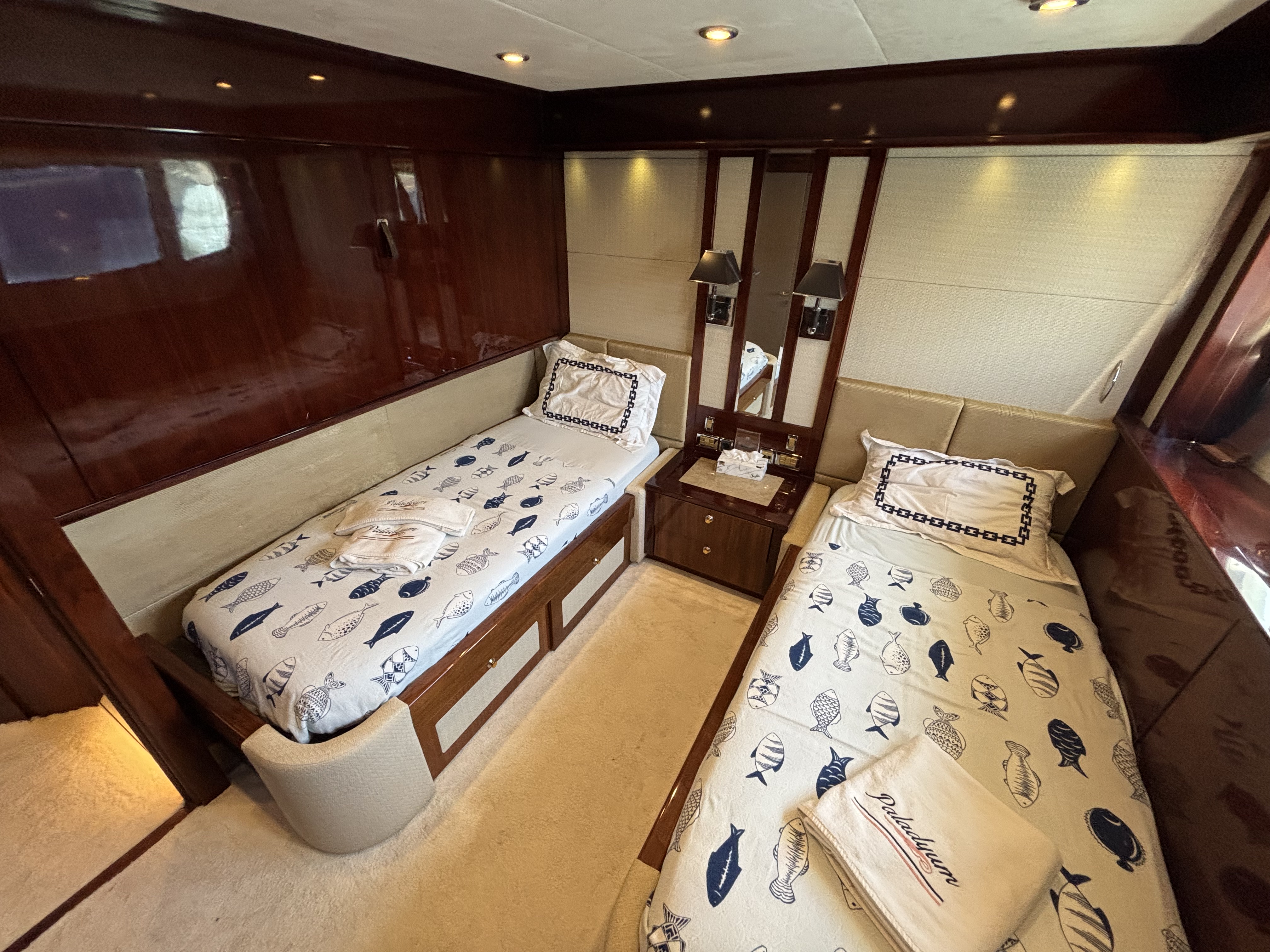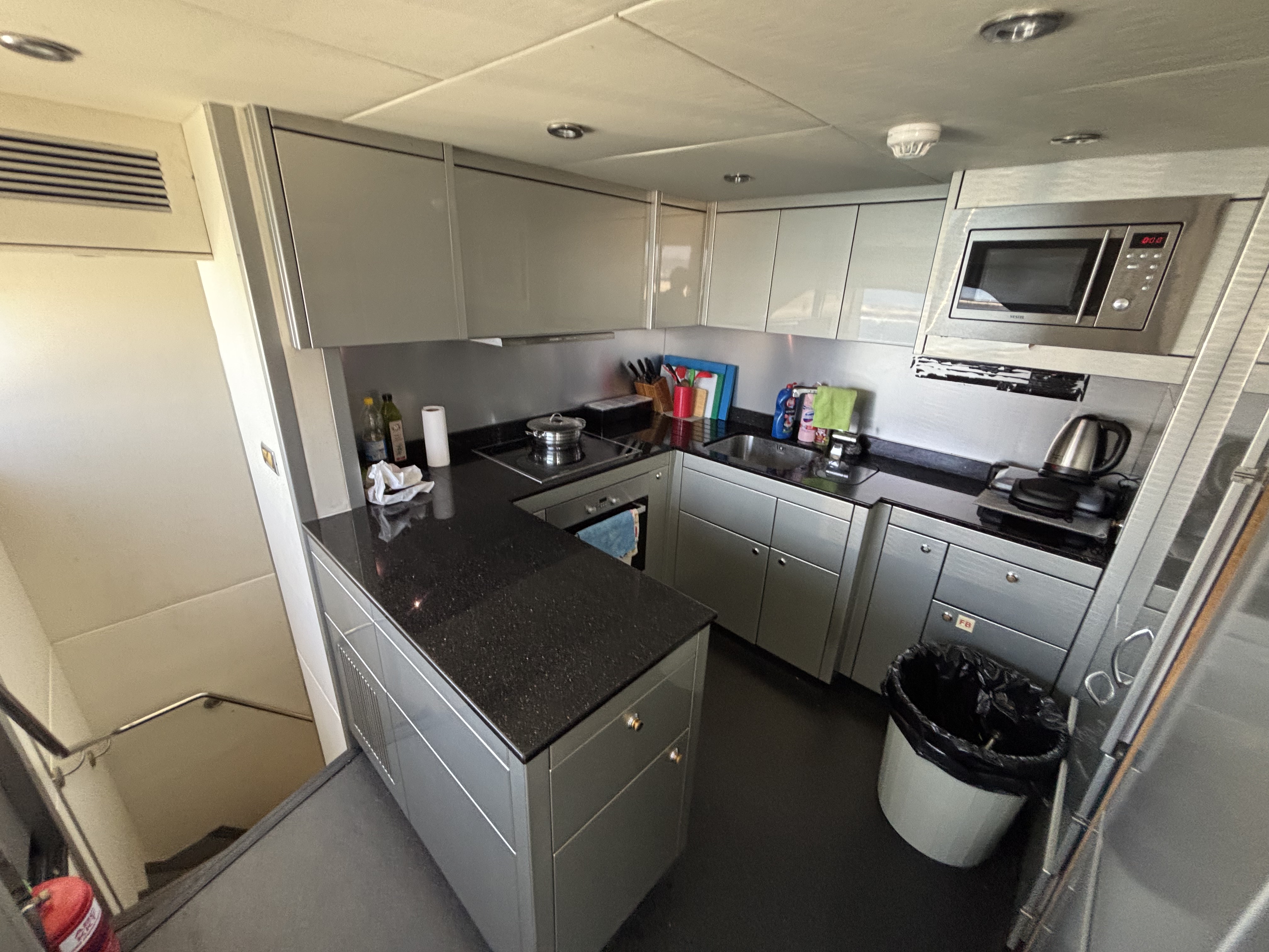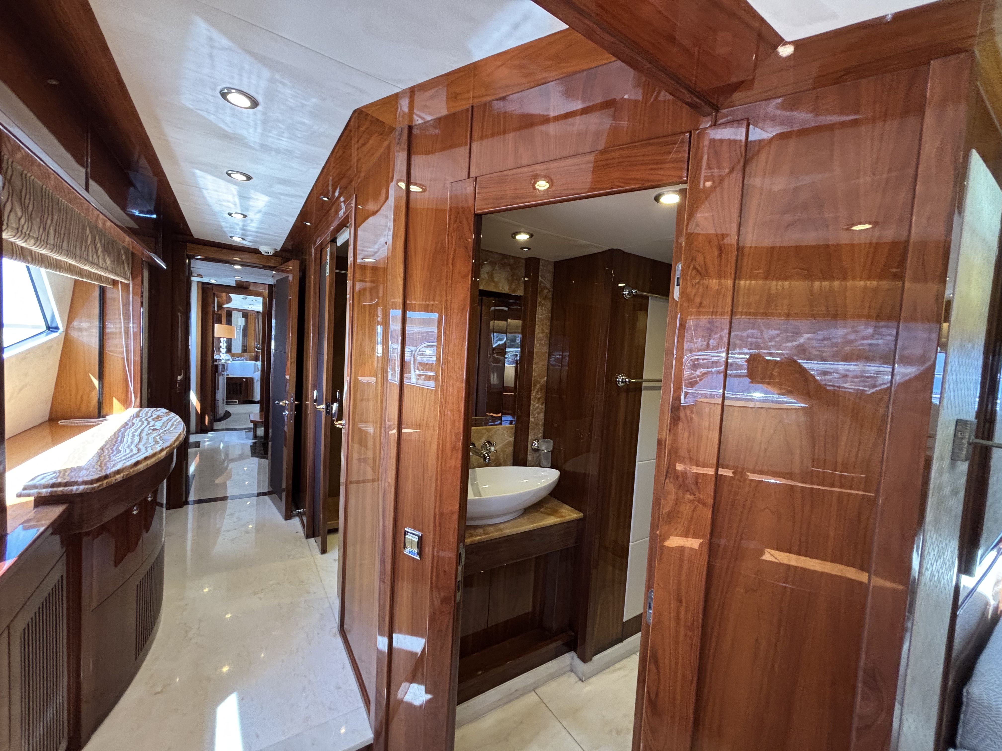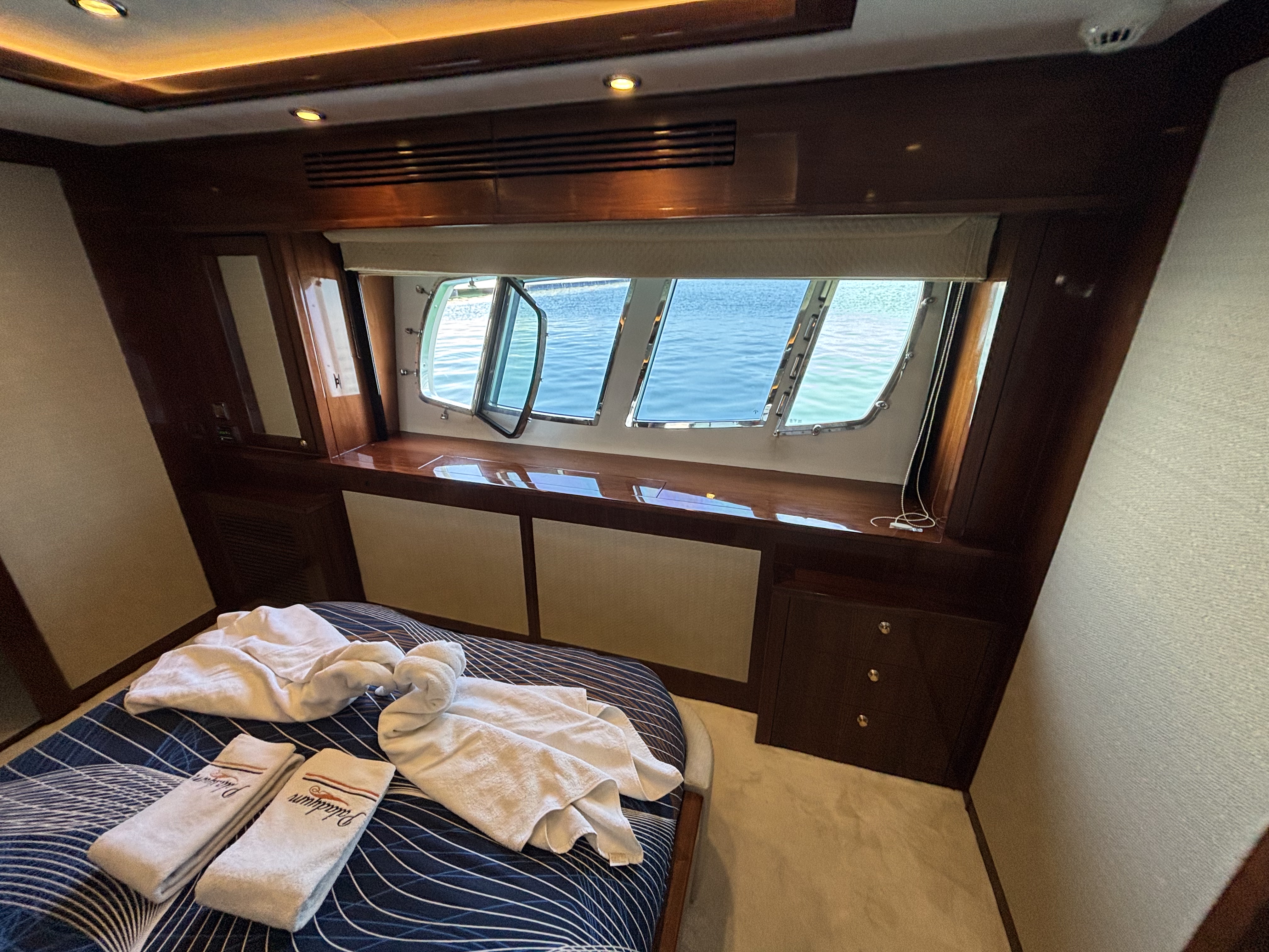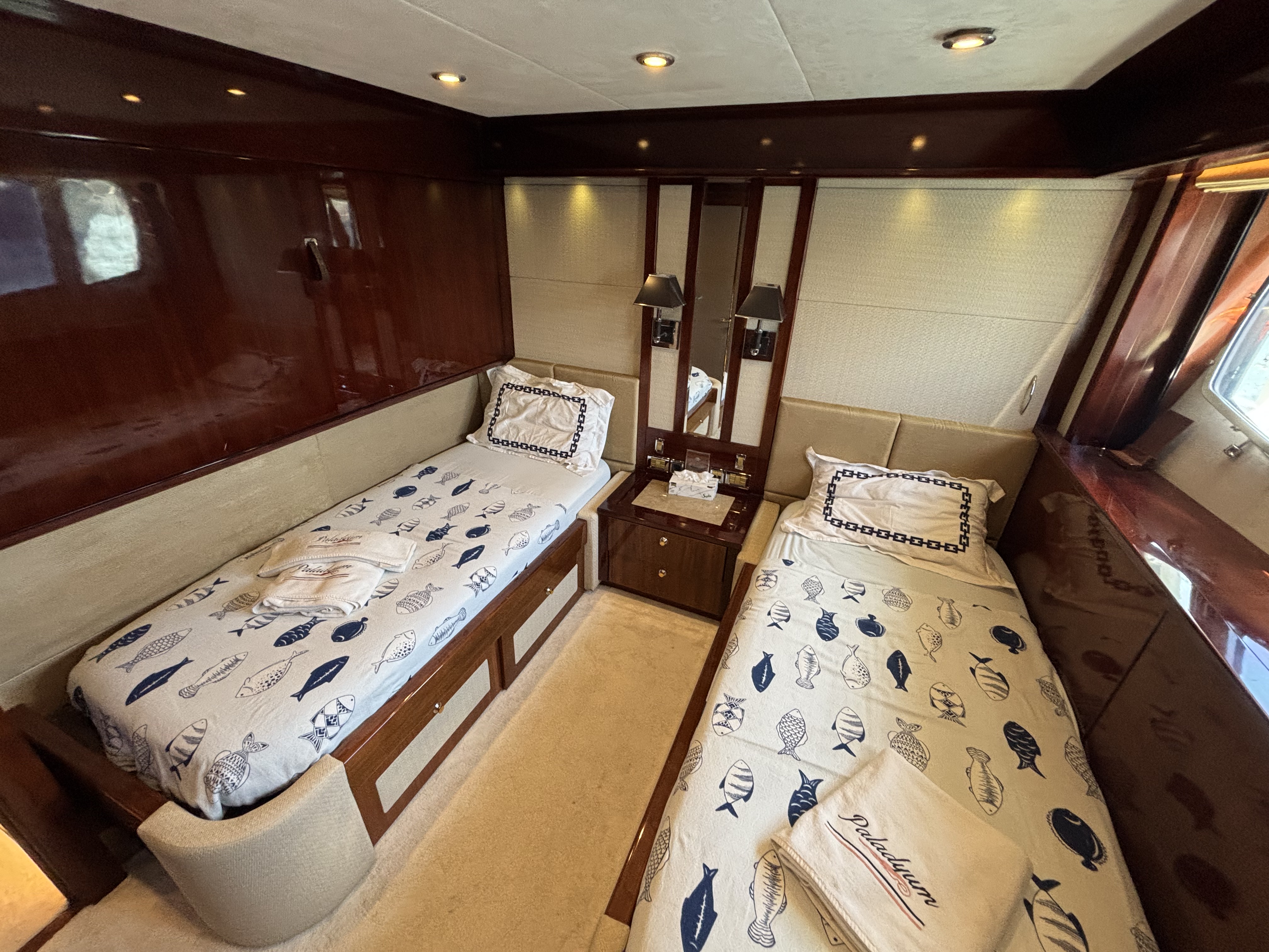 Desde el primer paso a bordo, te recibe un ambiente de lujo refinado. El salón principal desprende una sofisticación atemporal, con un espacio amplio ideal tanto para recibir invitados como para relajarse con total comodidad. Acabados en madera noble, mobiliario a medida y una atención al detalle impecable crean una atmósfera acogedora e impactante a la vez.