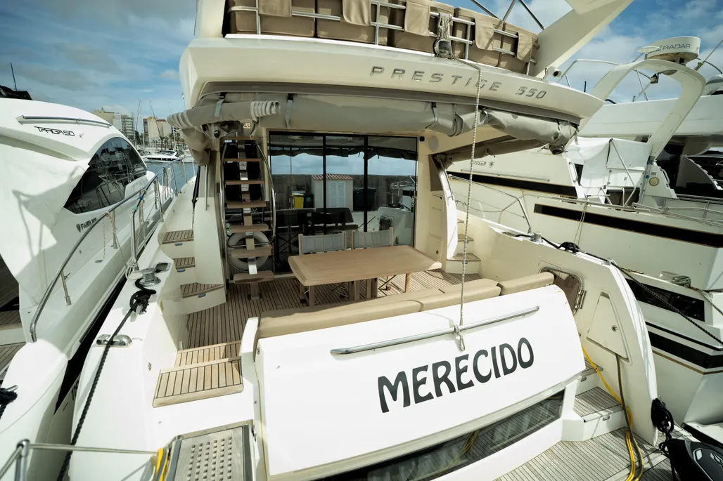El Prestige 550 Fly es un yate de motor de lujo producido entre 2012 y 2019. Reconocido por su diseño elegante y características innovadoras, ofrece una experiencia de crucero cómoda y estilosa.