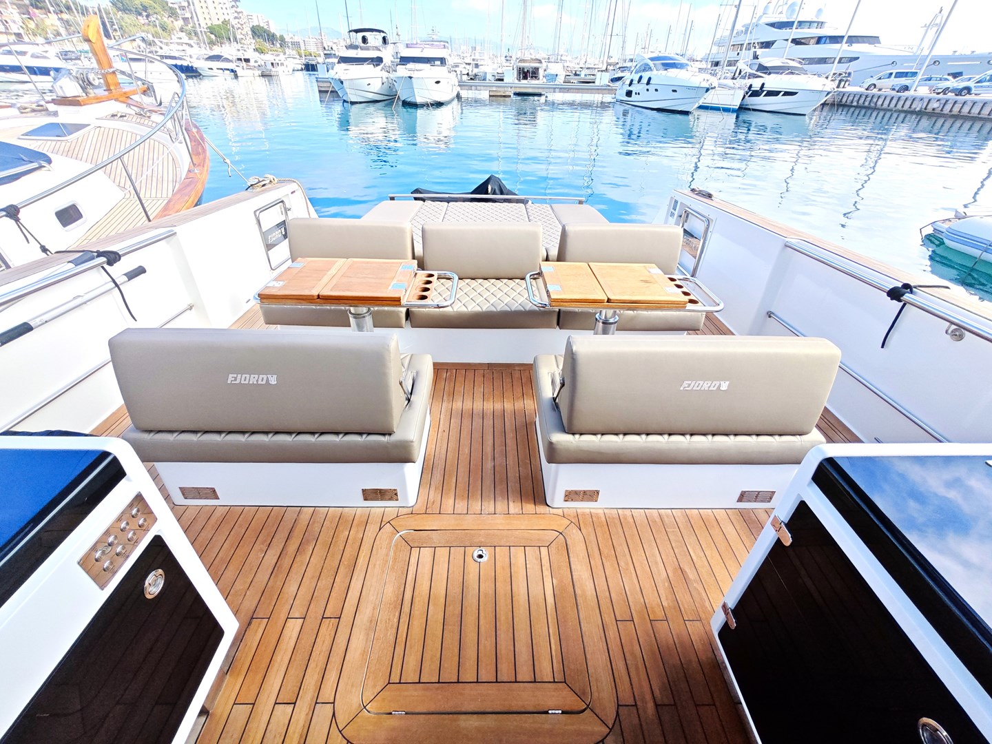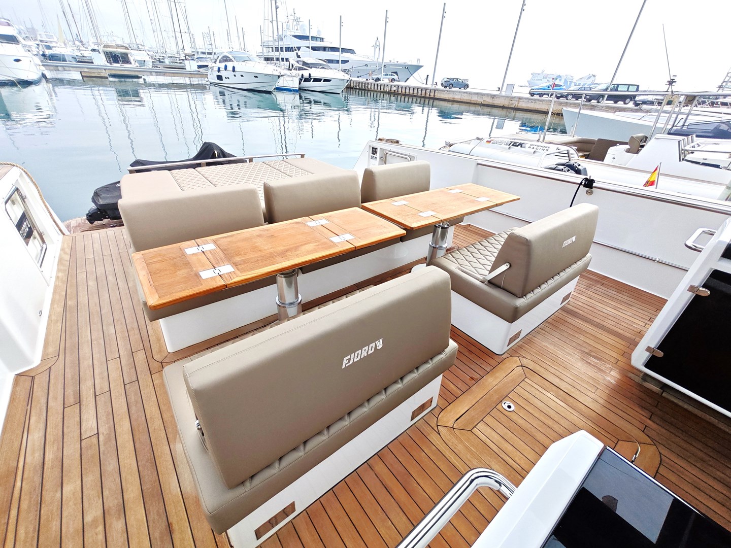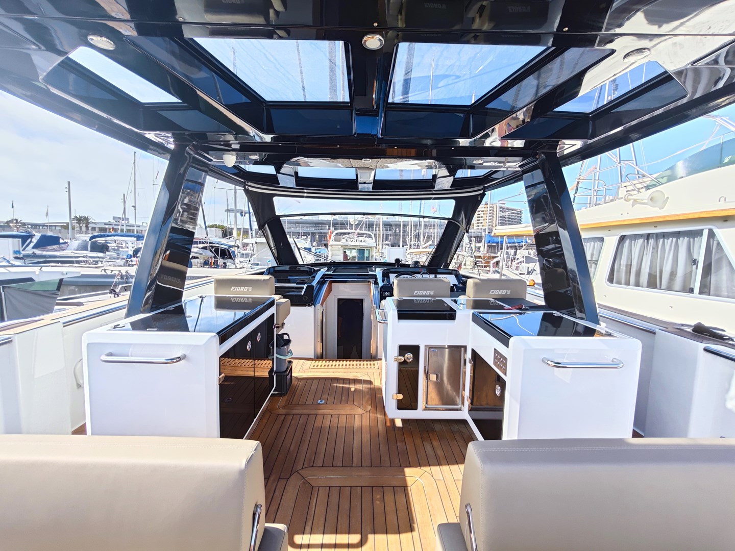 The Fjord 52 Open is the flagship of the open series. Powered by 1,300 horsepower and designed with the secure walk-around deck Fjord is known for, it delivers performance and confidence at every turn. The updated interior offers exceptional space and comfort, featuring modern wood finishes, mirrored storage, and refined wall materials. The owner’s bathroom continues this standard, with high-quality fittings and a thoughtful blend of textures that create a clean, contemporary atmosphere.