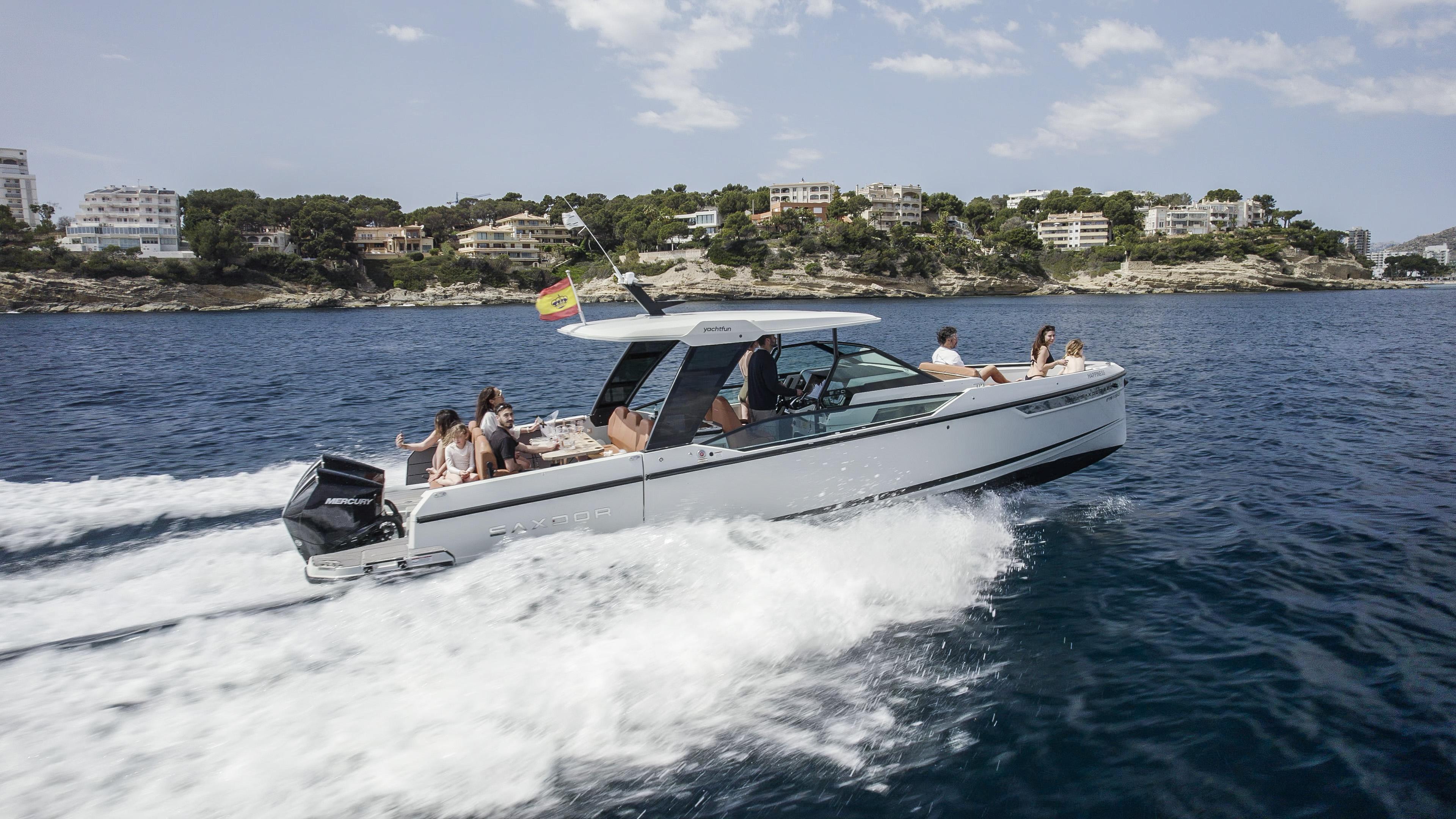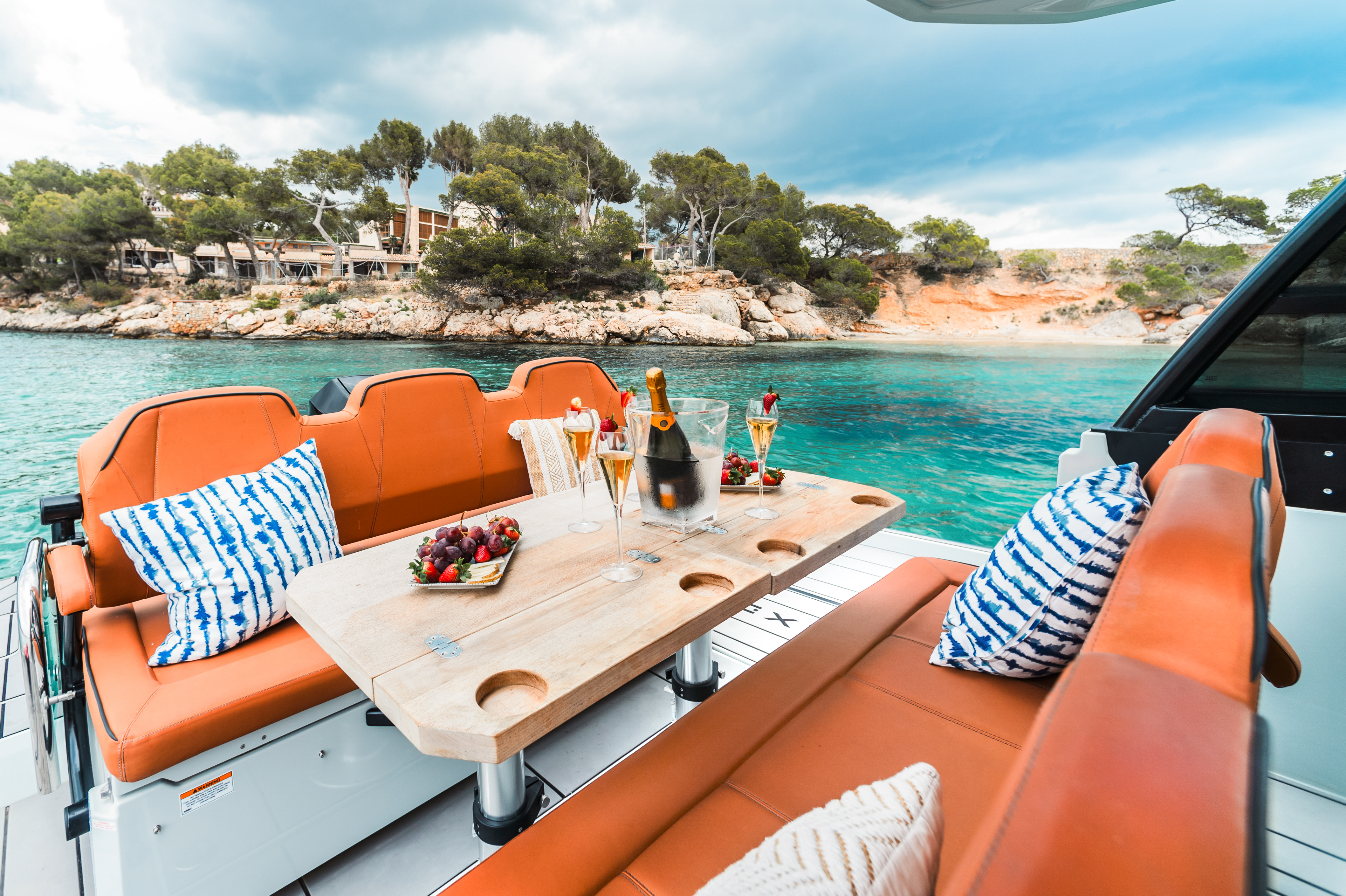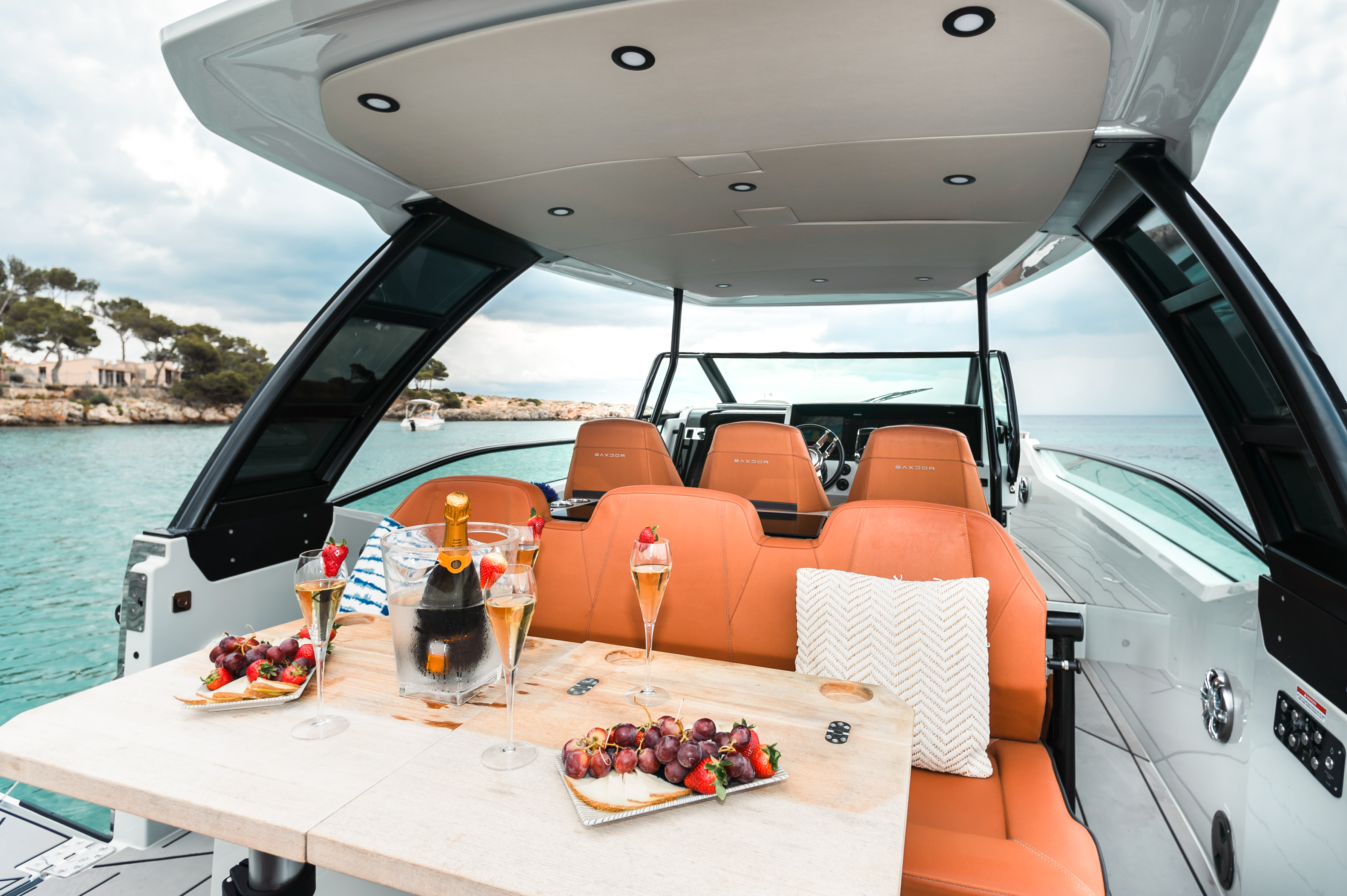 Nuevo en 2023, nuestro espectacular SAXDOR 320 GTO está ubicado en la prestigiosa marina de Portals y listo para charter.