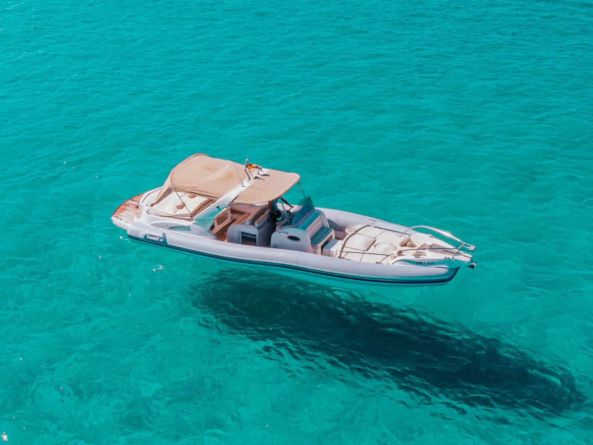 Rápido, estilizado y completamente reformado en 2021, el Marlin Rib 38 es perfecto para disfrutar un día en el agua en Mallorca.
