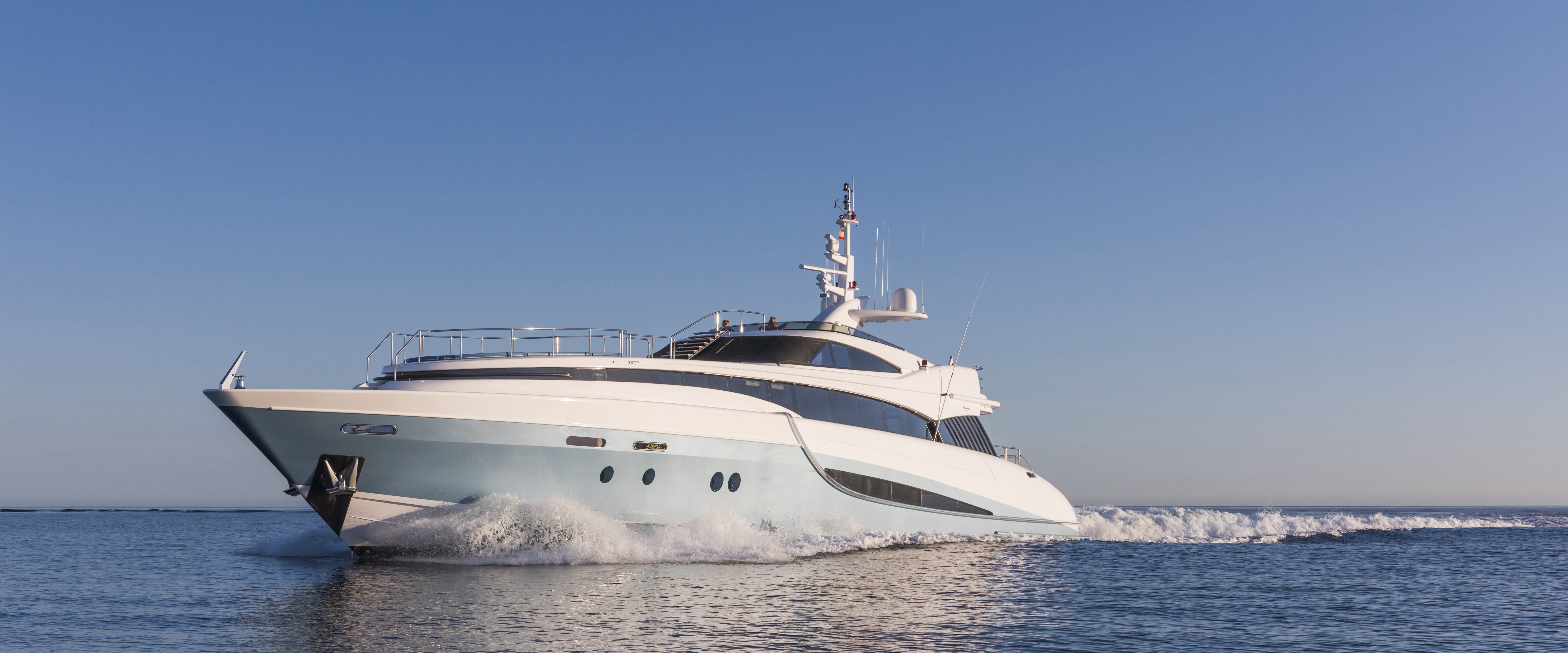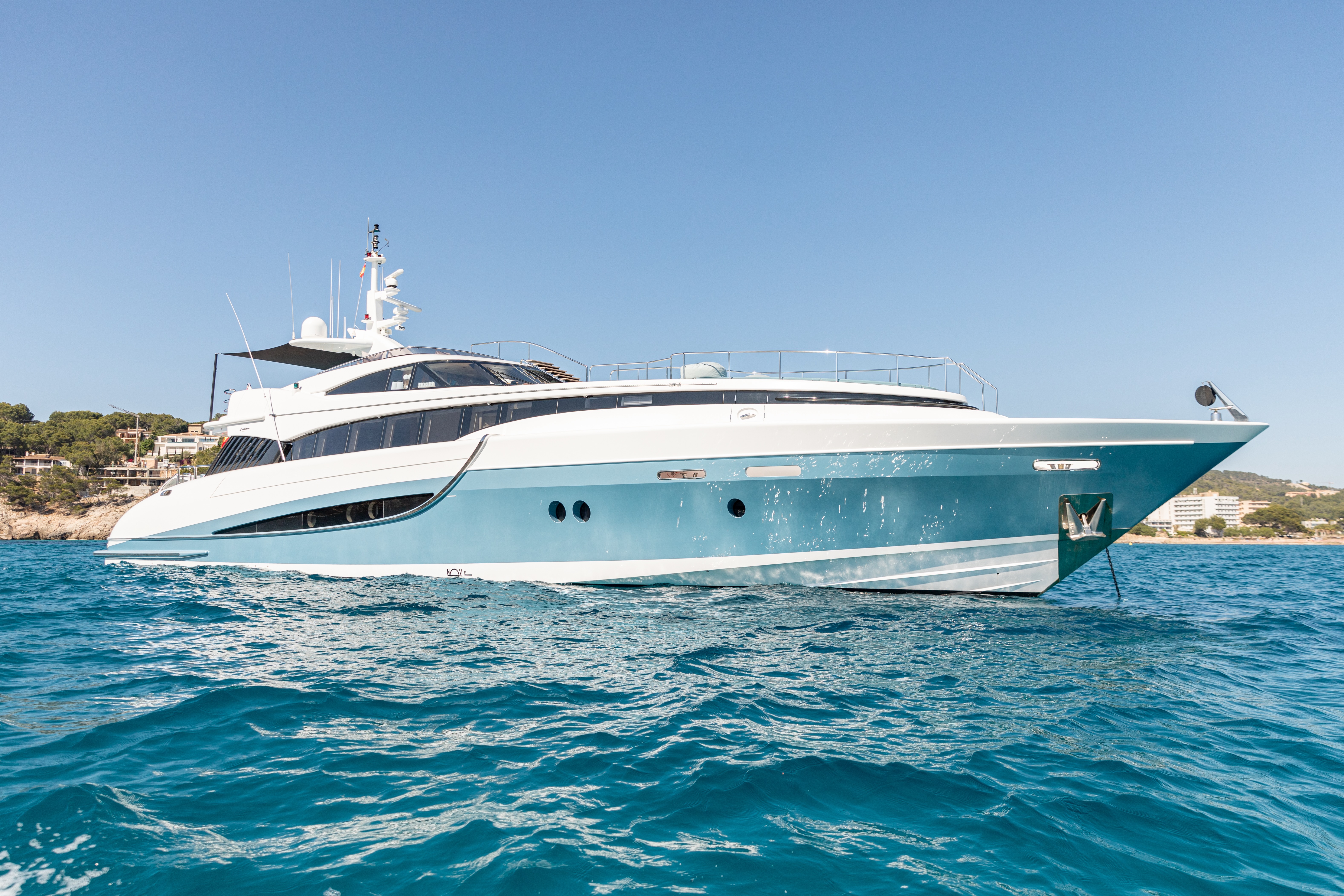 A remarkable vessel with an impressive overall length of 33.53 meters. One owner from new. The yacht boasts a robust fiberglass hull, ensuring durability and performance.