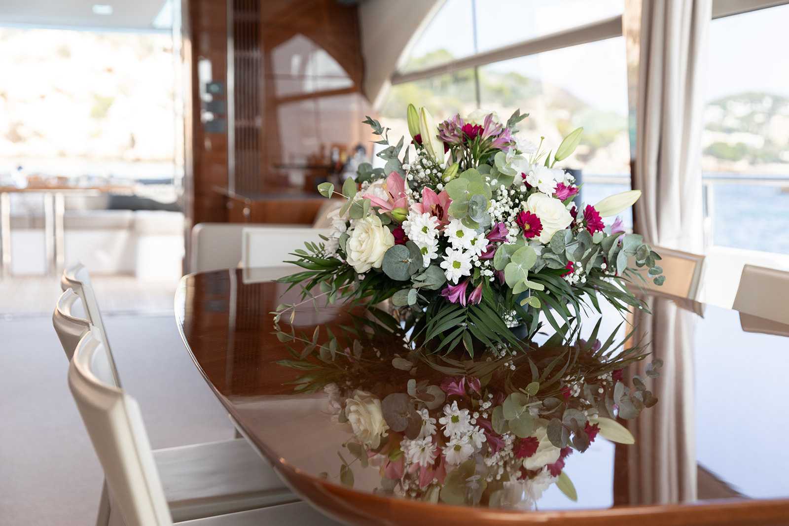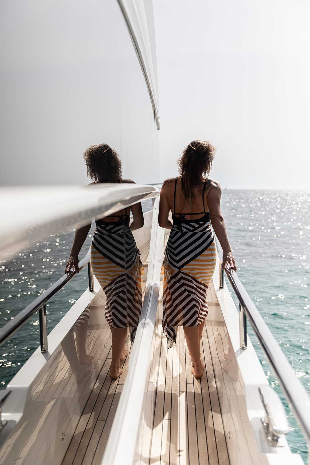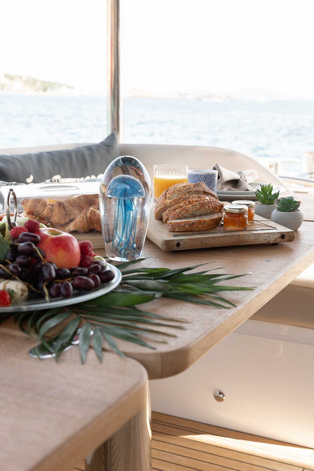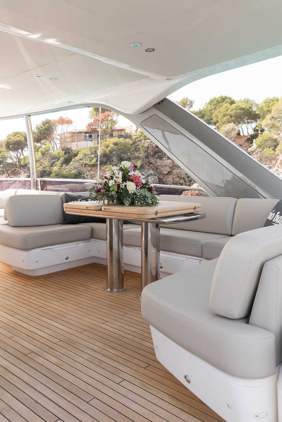 The Princess Y78 offers a refined blend of luxury, style and performance on the water. Its sleek lines, spacious flybridge and generous decks — including foredeck sun-pads and an aft cockpit — provide ample space for relaxation, socialising or sunbathing. Inside, the bright salon with large windows flows into a modern dining and galley area, while below deck four ensuite cabins accommodate up to eight guests in comfort