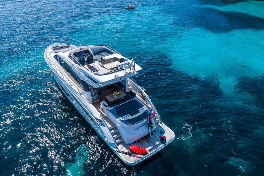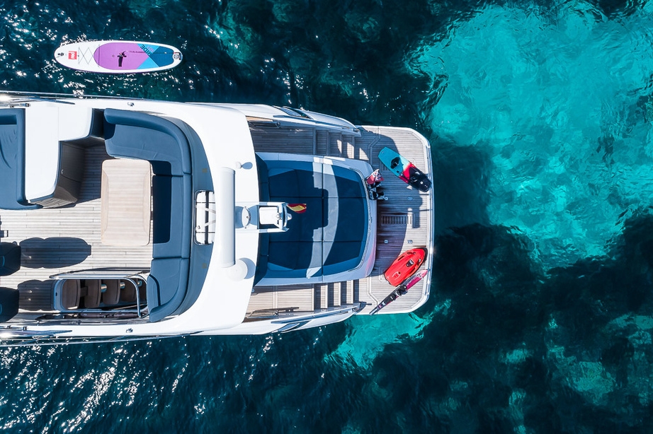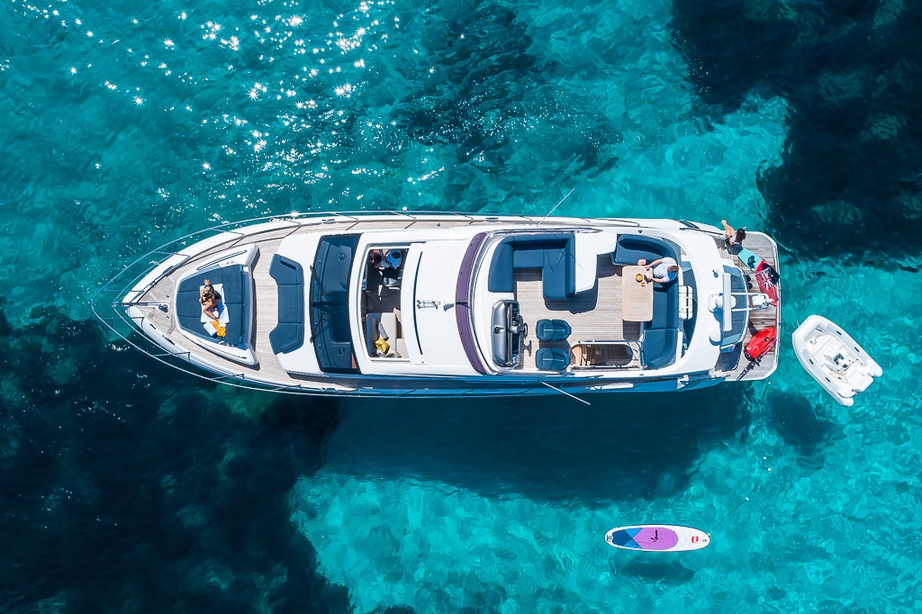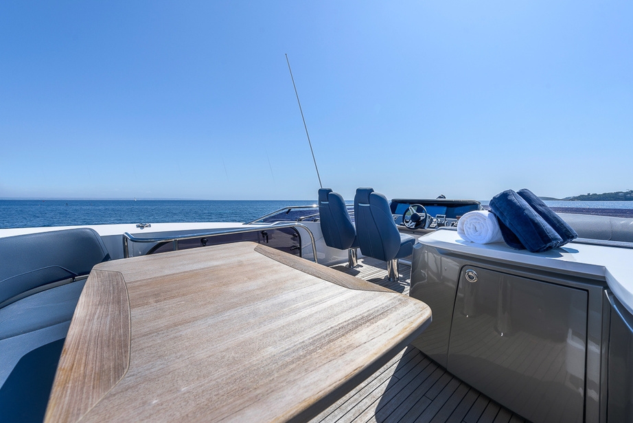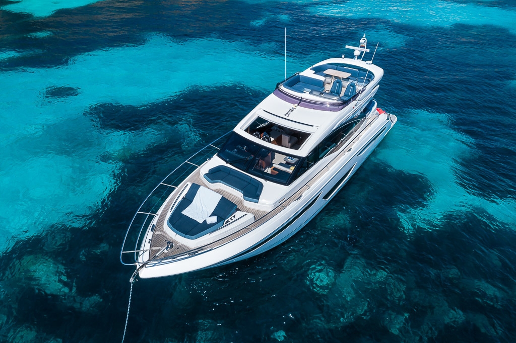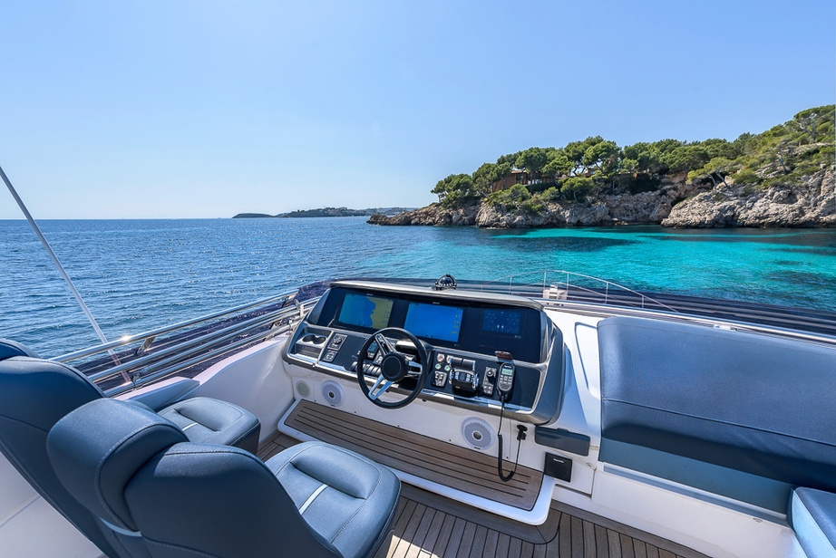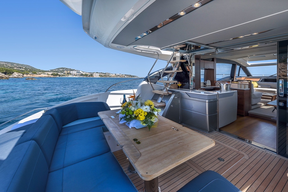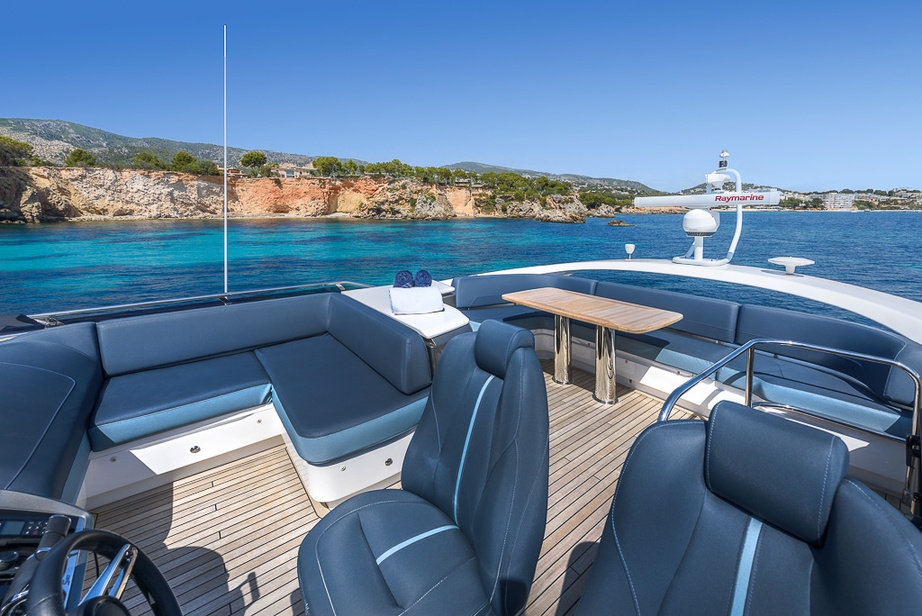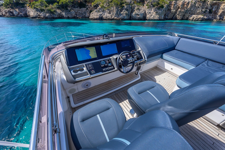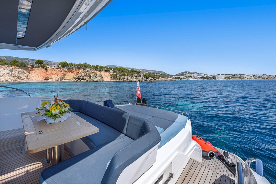 This Princess S60 blends sporty performance with elegant style, making it an excellent choice for Mediterranean cruising. Its sleek profile and dynamic lines give it a modern, luxurious presence on the water. The deck includes a comfortable cockpit area and sunbeds, perfect for relaxing or socialising under the Mallorca sun. Inside, you’ll find a bright salon flowing into a stylish galley and dining area, while below deck there are well-appointed cabins offering comfort and privacy for guests.