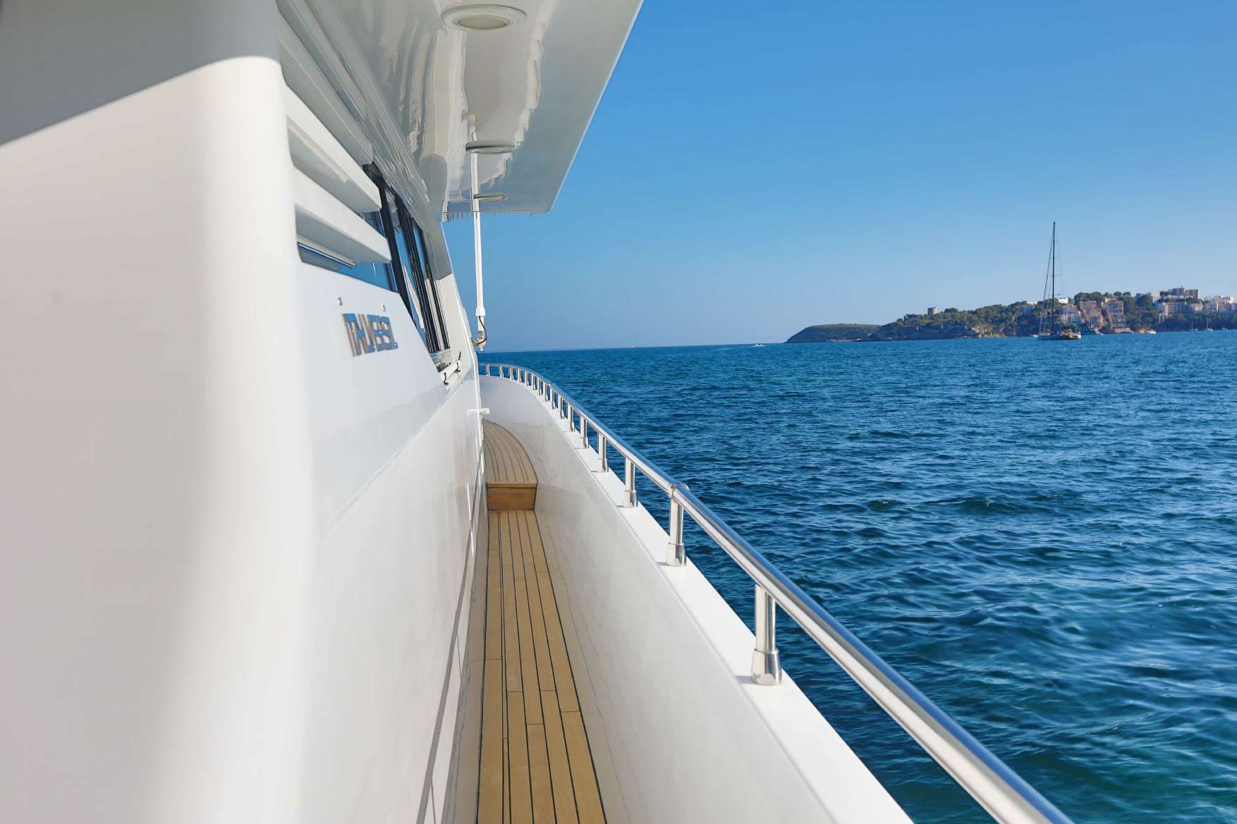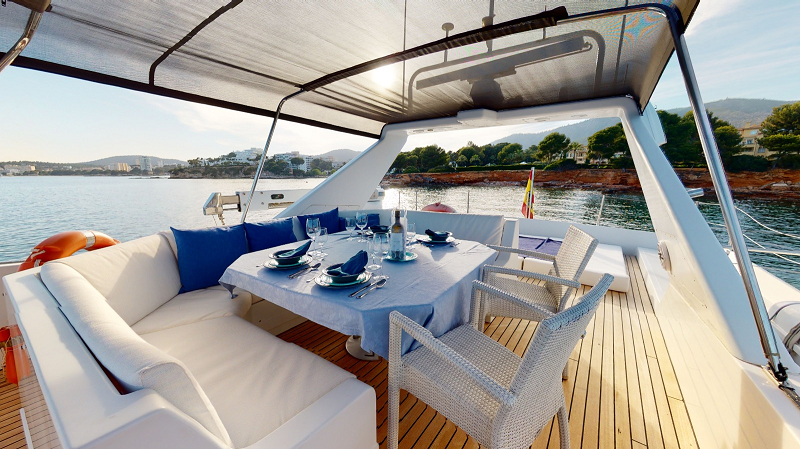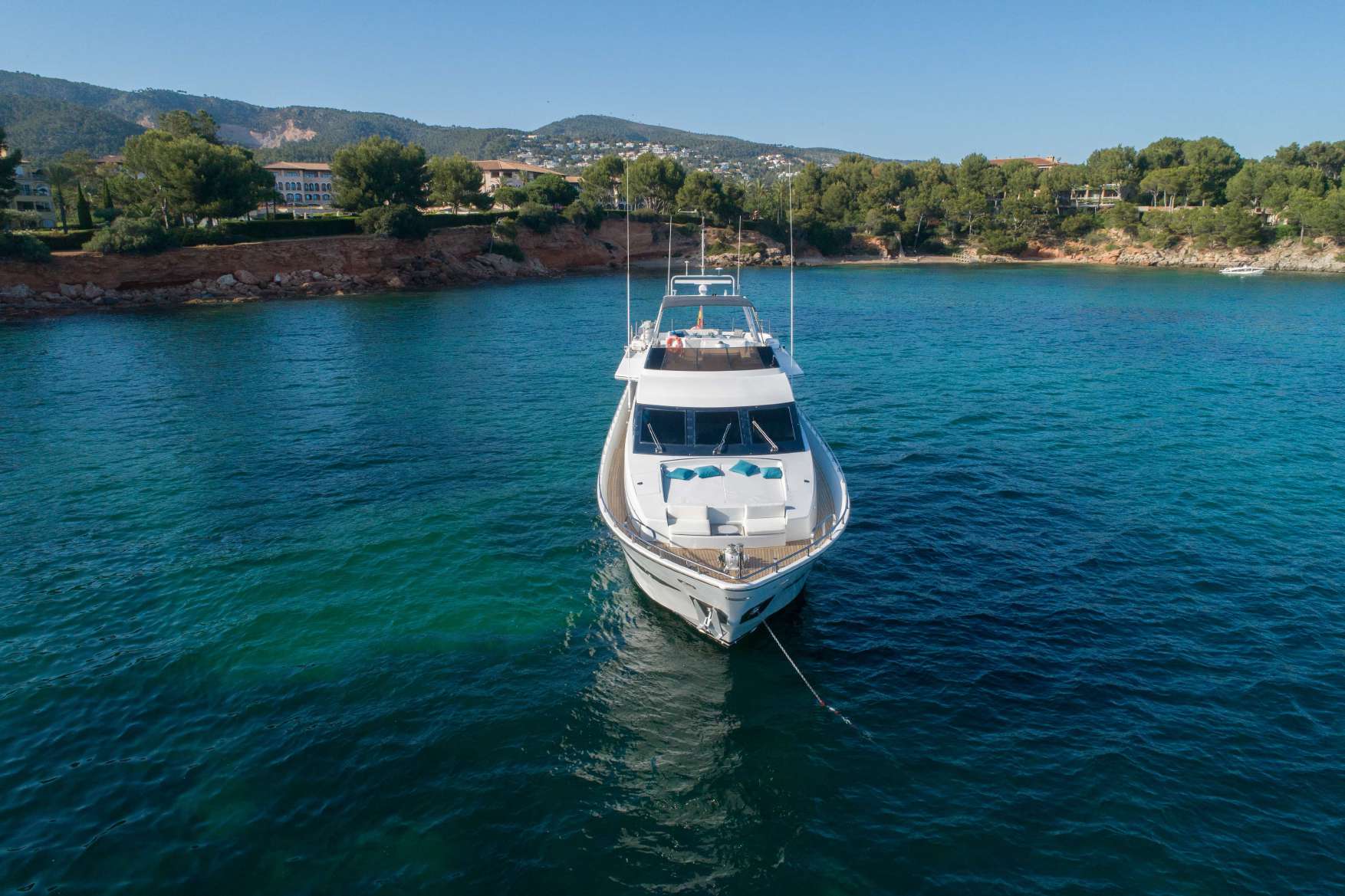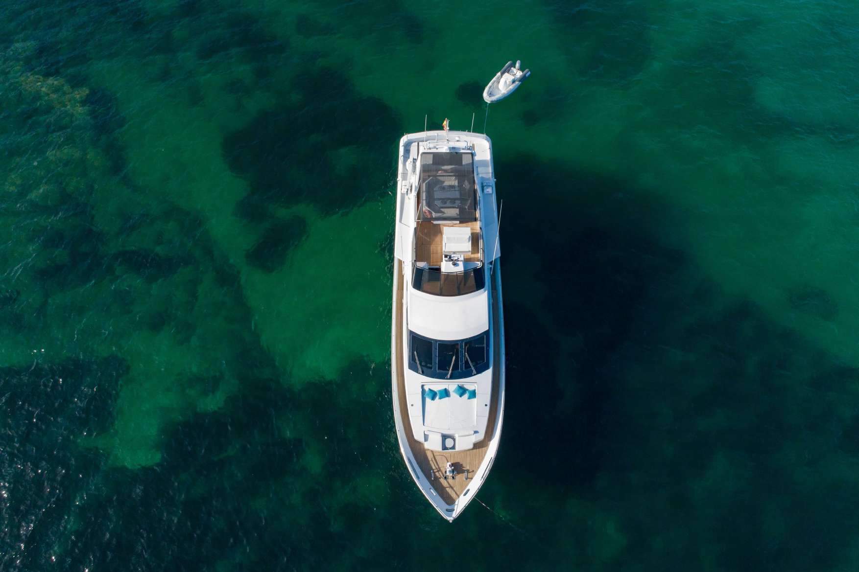 The Superphantom 80 delivers a classic, elegant yacht experience perfect for chartering in Mallorca or beyond. Its layout includes a spacious saloon that flows to a large flybridge with a wide solarium and ample seating — ideal for sunbathing, relaxing, or dining al-fresco. Below deck there are 4 cabins accommodating 8 adults (plus up to 2 children on Pullman berths), each with ensuite facilities, ensuring comfort for overnight stays.